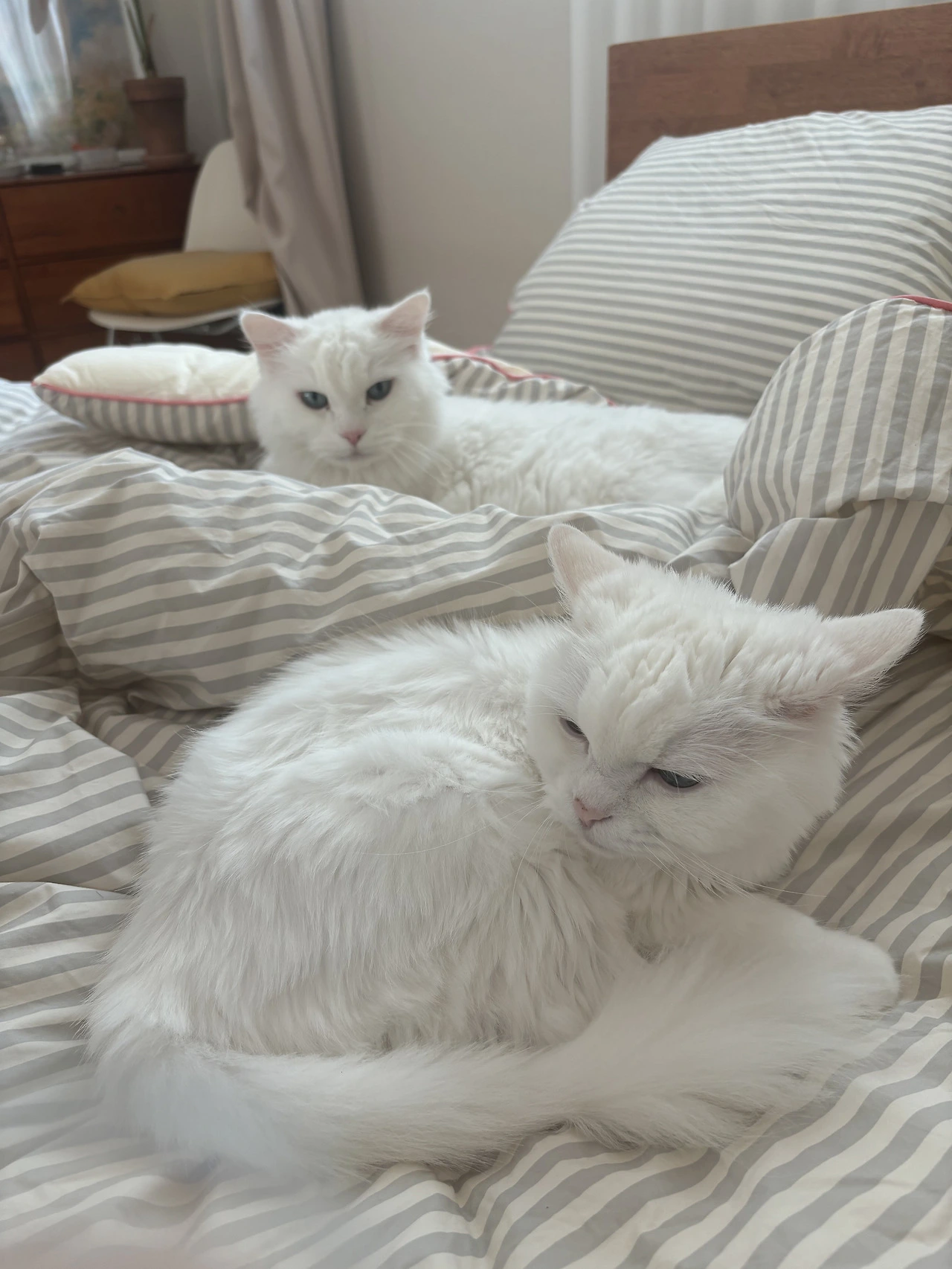 하얀 고양이 증후군이 생긴 건지 안경을 쓰지 않은 흐린눈엔 집 안의 하얀 쿠션과 베개와 수건들이 웅크려있는 야옹이로 보일 지경이었습니다.
