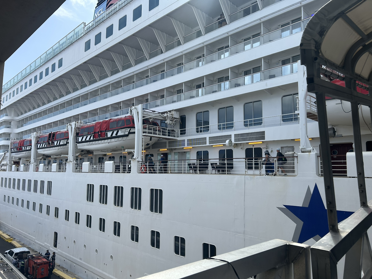 아침에 일어나 창밖을 바라보니 배가 한 척 들어오고 있다. 시간이 오전 6:20, 오후에 우리가 타고 여행할 배로 보인다.