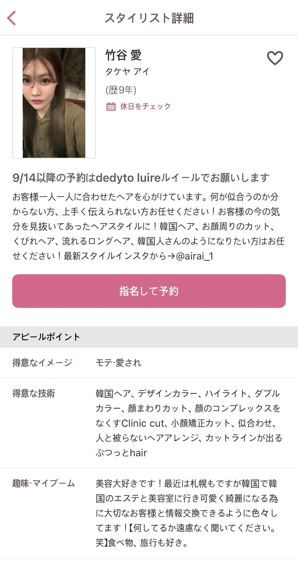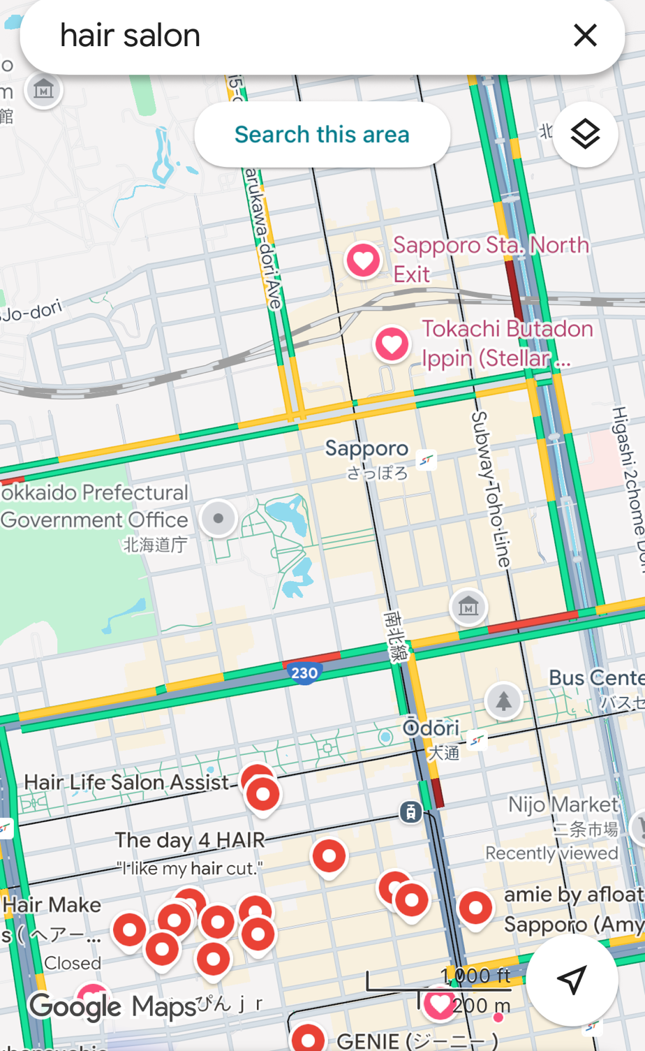 우선 내가 묵고 있는 곳을 기준으로 구글 맵으로 미용실의 위치 확인, 가장 분포가 많은 곳은 오도리 역 근처가 많았다. 하지만 꿋꿋하게 집 근처로 확인, 제일 깔끔해 보이는 인테리어의 dedyto라는 미용실을 찾았다. 이곳 홍보는 한국인 디자이너는 없는데, 한국스타일의 머리가 가능하다고 한다. 운이 좋다. 당일 오후 3시에 온라인으로 예약하고 방문했다.