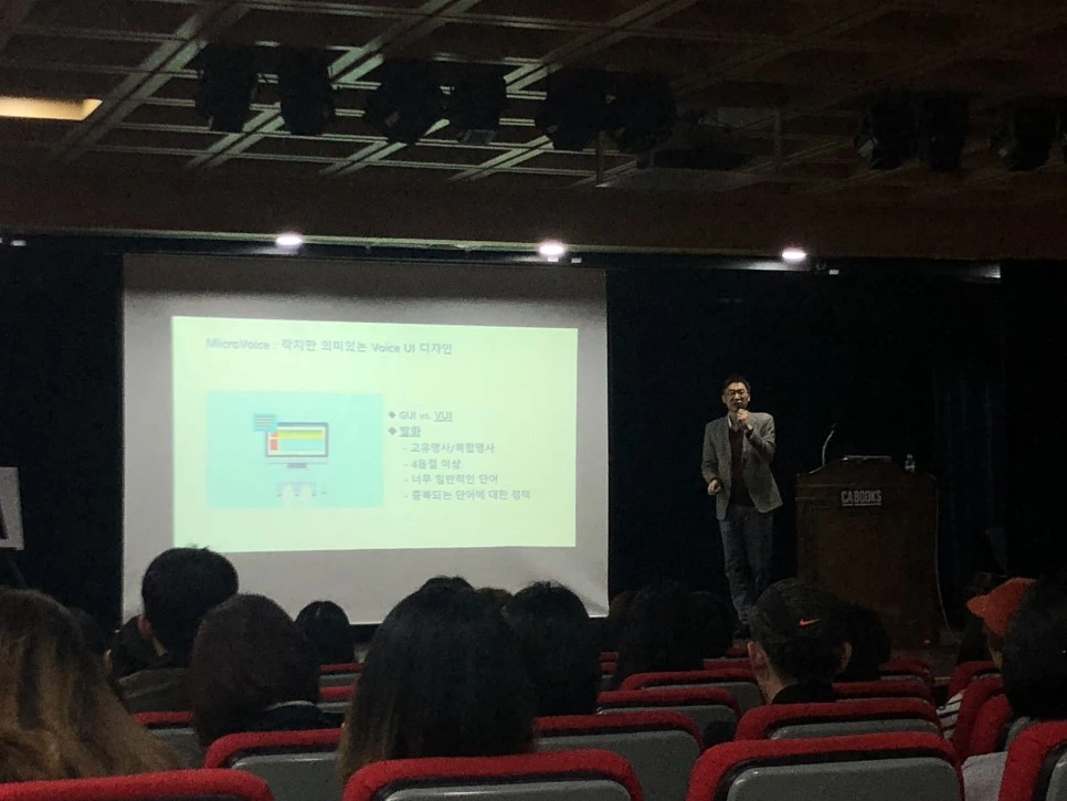 채행석님은 KT에서 근무중이며 기본적으로는 UX기반 업무를 하고 HCI기반, IT컨설팅 관련된 것을 진행하기도 하신다고 한다. 휴대폰 단말을 전체적으로 총괄하고 음성관련된 부분에 대한 연구와 프로젝트들을 진행하기도 했고 KT에서는 기가지니를 직접적으로 진행하진 않았지만 커스터머 운영 혁신팀에 있다고 소개했다. 강연의 내용에 본격적으로 들어가기 보단 서론이 좀 많이 길었어서 집중도가 떨어진 것 같다. 초반에 기가지니를 사용한 사람이 있는지, 어땠는지와 같은 가벼운 질문으로 아이스브레이킹이 되었지만, 본론에 들어가기 까지, 거의 30분 가량이 소요돼서 강연 부분이 너무 급하게 진행됐다...