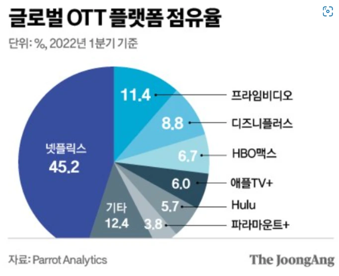이를테면 디즈니, 워너같은 경우 디즈니는 마블, 스타워즈 등의 IP와 워너미디어의 HBO맥스는 왕좌의 게임과 같은 대작 IP가 있다보니 넷플릭스가 긴장할 수밖에 없는 상황이 펼쳐집니다.