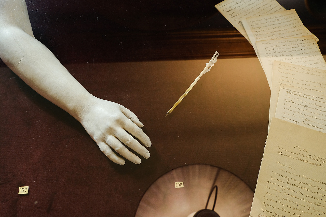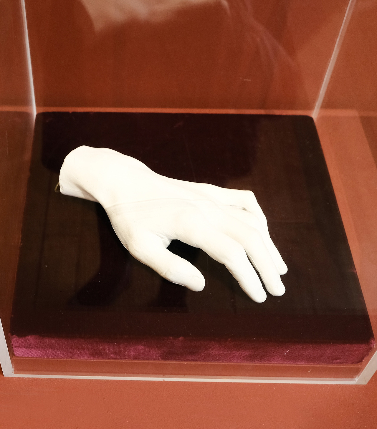 여섯 살 연하의 병약했던 쇼팽에게 항상 모성적인 사랑을 베푼 그녀는 쇼팽의 어머니 유스티나에게 보낸 편지에 “당신의 아들을 내 아들이라고 생각하고 내 삶을 바치겠습니다”라고 쓰기도 했다. 그들이 함께하던 시기 쇼팽이 작곡한 대부분의 곡은 상드를 위한 작품이었다. 그녀의 오른손을 본뜬 주물과 원고, 작고 아름다운 브로치와 반지를 보며 쇼팽과 상드의 따뜻한 순간을 상상해본다.