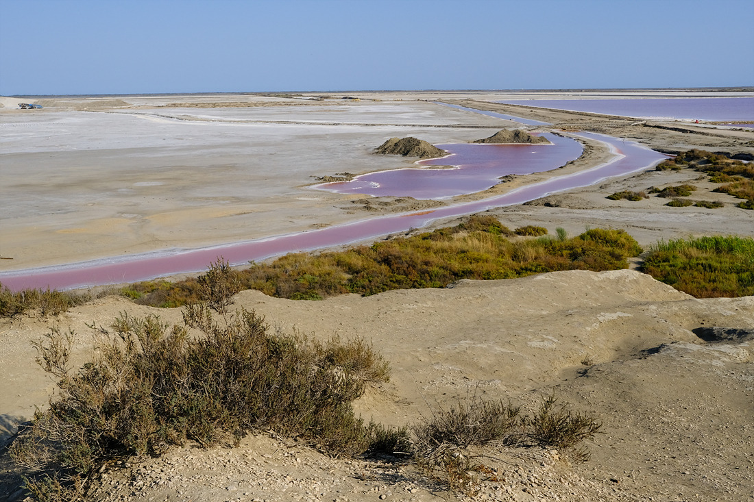 또 다른 이색적인 풍경은 분홍색 염전이다. 꺄마흐그는 적은 강수량과 강한 햇살 덕분에 소금 생산량이 많다. 특정 지역에서만 생산되는 희귀한 바다 소금인 꽃소금(Fleur De Sel)도 찾을 수 있다. 일반 소금보다 입자가 굵지만 잘 녹고 맛이 좋다. 소량 생산되기 때문에 비교적 고가이며, 영양 면에서도 뛰어난 것으로 알려져 있다. 염전의 바닷물은 특유의 박테리아 때문에 분홍색으로 보이는데, 태어날 때 회색이었던 플라밍고가 점점 분홍색으로 바뀌는 것도 이 박테리아 때문이라고 한다.