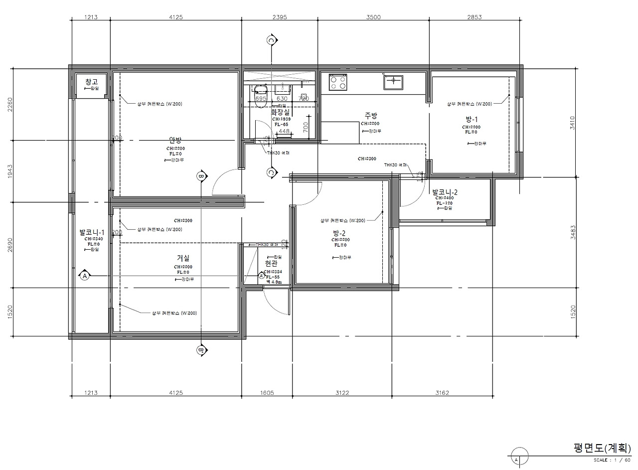 남편이 건축주와의 지난한 조율을 통해 확정한 설계도를 첨부한다. 우리 현장은 총 일곱 장의 설계도가 나왔다. 이하는 그 중 세부도를 제외한 네 장이다.