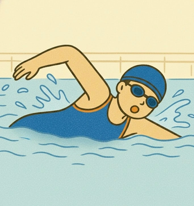 그날 이후로 강사님은 강습이 끝나기 직전, 반 인원을 두 레인에 나눠 세운 뒤 대시로 시합을 겨루게 한다(그러나 아무도 경쟁 심리를 가지진 않는다. 우리는 모두 퇴근 후 지친 수영인이기 때문이다.). 이미 강습만으로도 충분히 녹초가 된 상태지만, 나는 남몰래 이 시간만을 기다린다.
