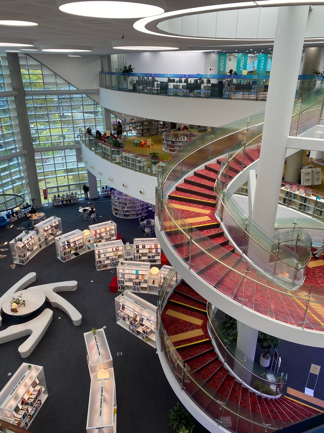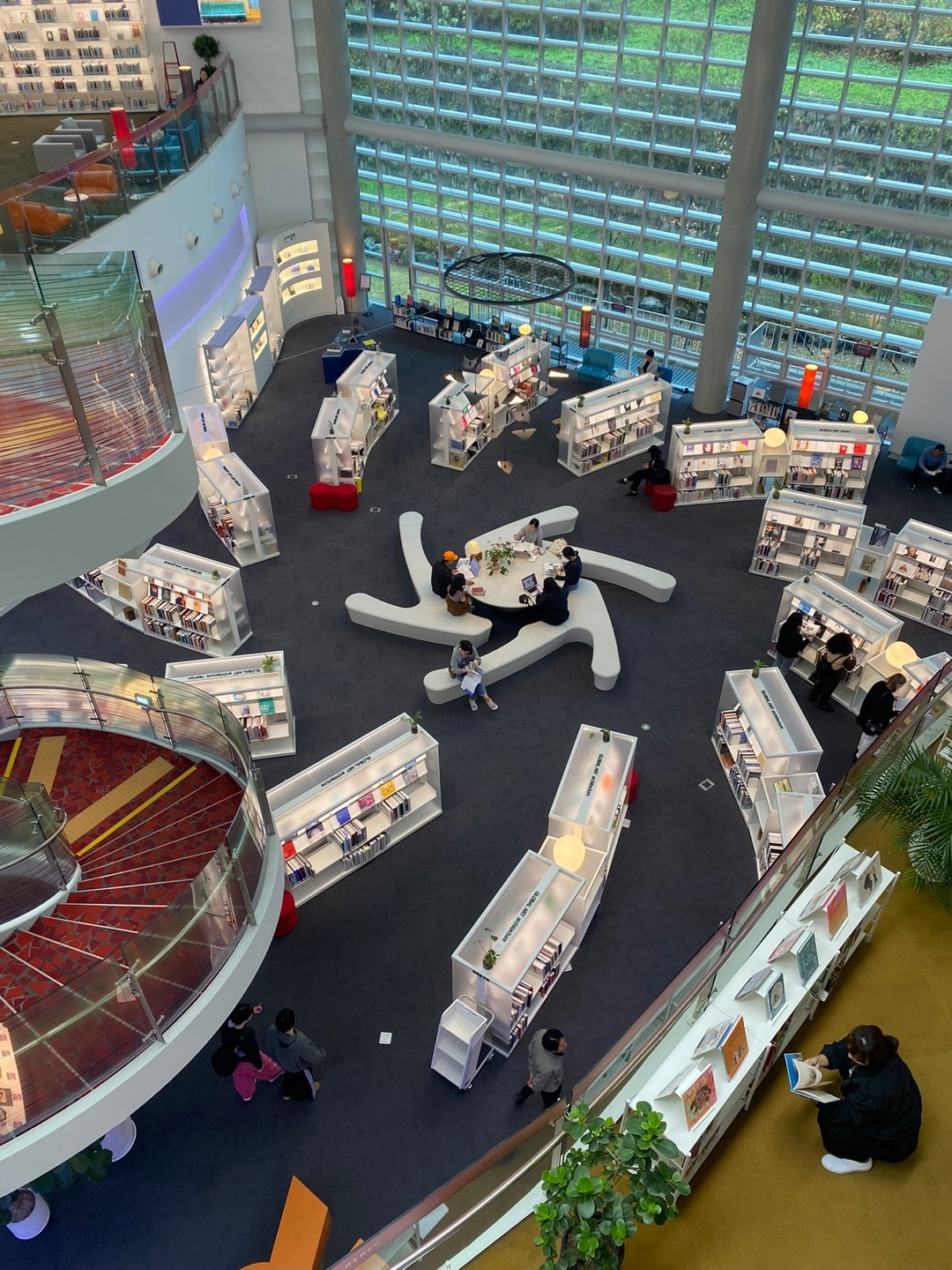 공간은 이러한 기획의도에 걸맞게 오픈 플랜 형식으로 이루어져 있다. 중심부에 있는 원형 계단에서 도서관 모든 공간이 보이게끔 완전히 트여 있고, 밖에서 문을 열고 들어오면 이후에 문을 열 일이 없다. 심지어는 어린이 열람실과 일반 열람실 간 구획도 존재하지 않는다. 그러면 이런 질문이 들 것이다. 소음 문제가 발생했을 때 누가 이 문제를 해결할 것인가? 여기서 과장님은 신뢰와 자율을 제시하셨다. 서로가 서로에게 피해를 주면 안 된다는 책임감과 자율성을 믿는 것이다. 서로 연결되도록 만드는 공간은 동료 시민과의 관계성을 잘 느끼게 만들고 이것이 시민의식을 만든다.
