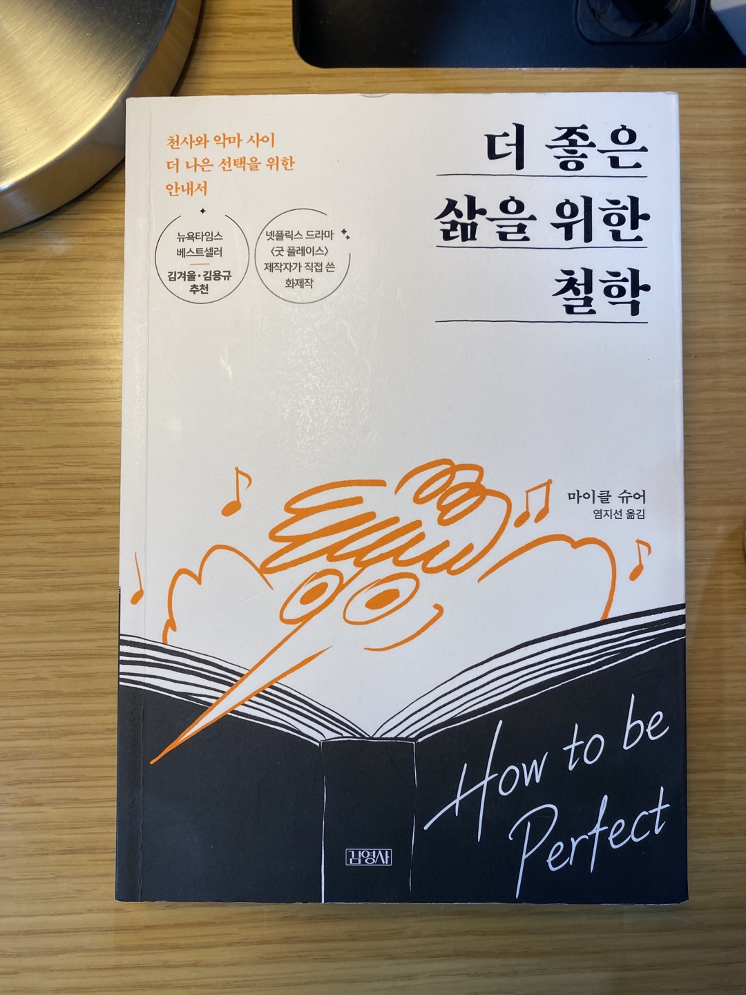 드라마 <굿 플레이스>가 내 인생 드라마 중 하나인 것에 더해, 이 책 또한 내 인생 책이 될 것 같다. 좋은 사람이 되고 싶다는 마음과 그러지 못하는 나 자신의 괴리 속에 괴로움을 느끼던 내게 큰 힘이 되었다. 드라마 <굿플레이스>를 보면 악마가 사람을 벌주는 방법으로 선한 사람들만 있는 천국에 평범한 사람 홀로 남겨두는 방법을 사용한다. 완벽한 사람들 속에 넣어둠으로써 스스로 자기 존재의 불완전성을 강하게 느끼도록 한 것이다. 나는 이것이 선한 삶을 살고자 하지만 매번 실패하는 인간의 고통을 극대화한 것이라는 생각이 들었다. 우리 또한 신화에 나오는 시시포스처럼 매번 선한 삶에 실패하지만 다시 시도하지 않은가? 이 책은 그러한 모순을 끌어안고 '그럼에도 불구하고' 조금 더 잘 살 방법을 고민하는 책이다.
