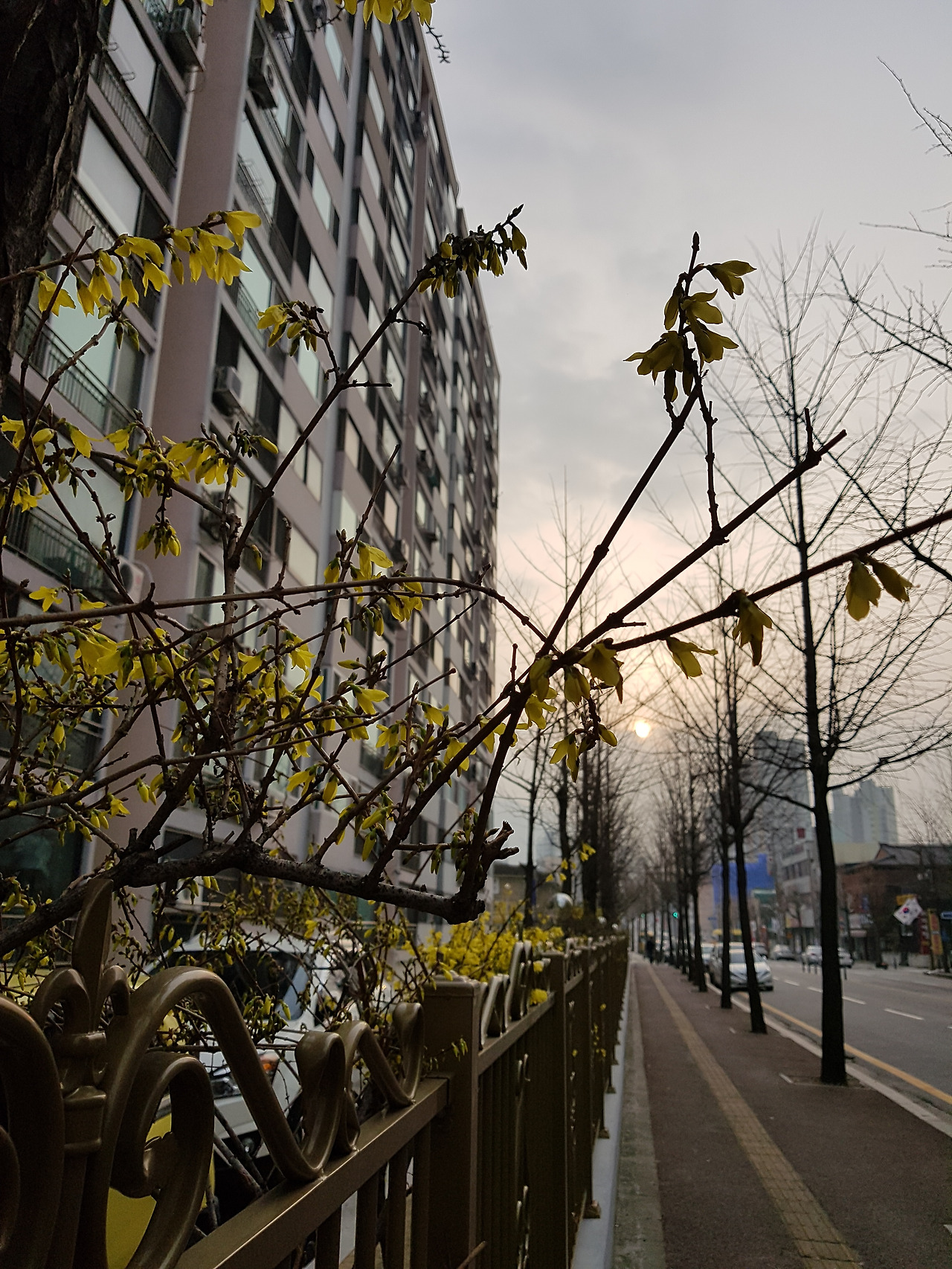 날씨는 많이 풀린거 같다. 아파트 화단에 핀 개나리가 봄임을 증명한다.