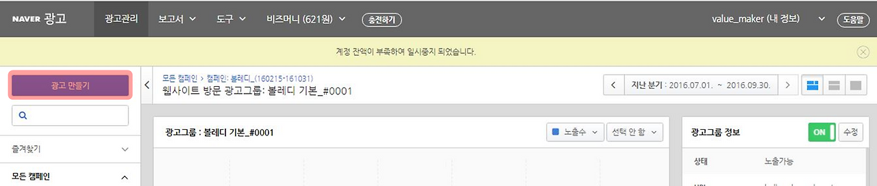 검색광고 관리 시스템에서 관리가 가능해졌다.