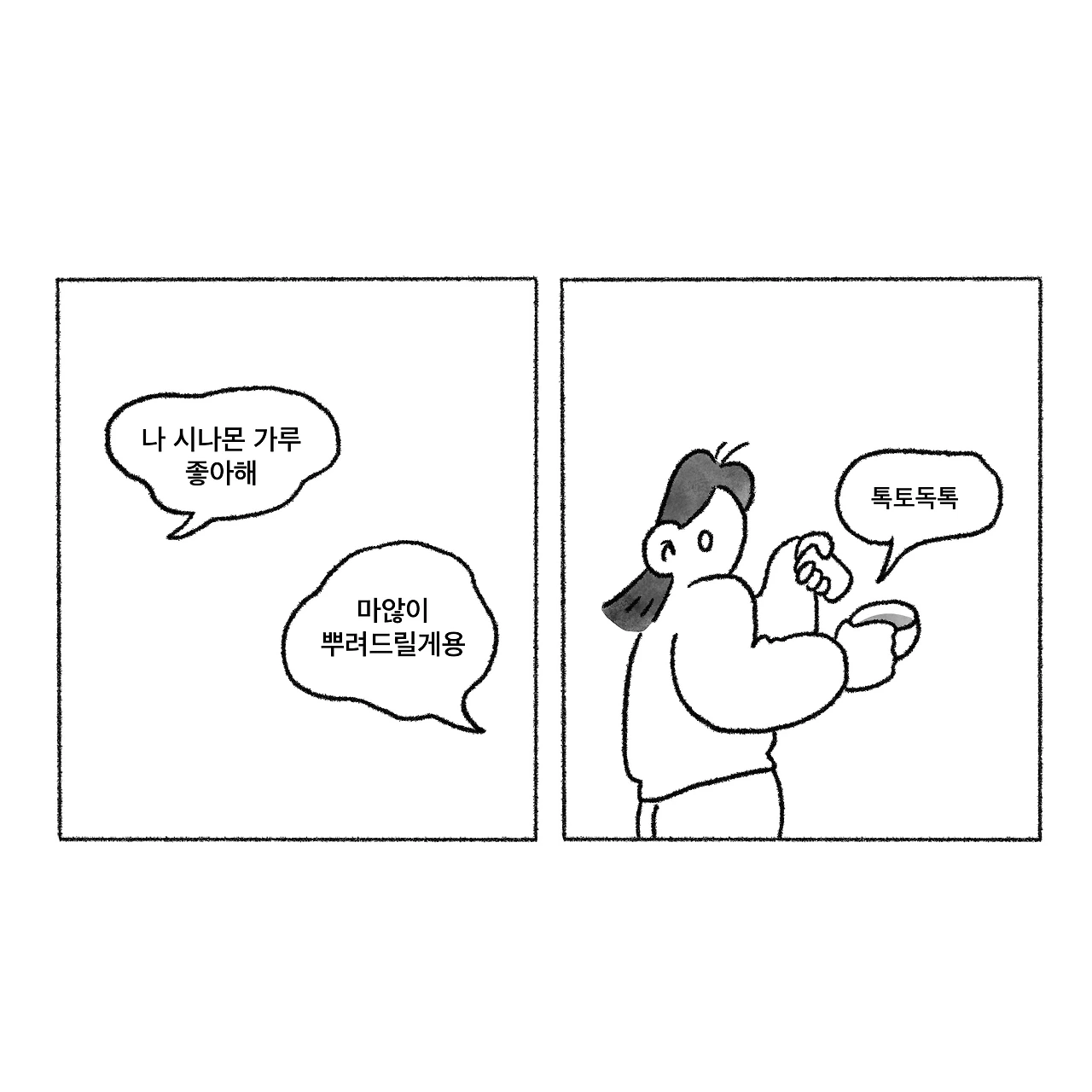 엄마와 할머니 그 사이 나이로 보이시는 분이 카푸치노를 주문하시며 이렇게 말씀하셨다. 너무 귀여우셨다. 나는 듬뿍 뿌려드렸다.
