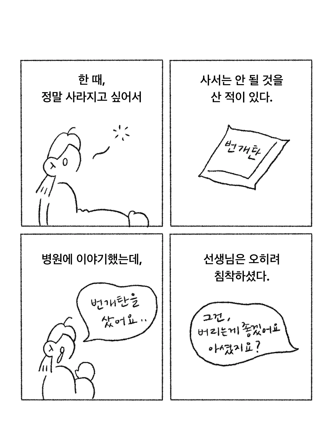 선생님께서는 침착하게, 하지만 힘주어 말씀하셨다. 엉엉 울면서 이야기했는데 약간은 허무했다. 당연한 거잖아! 버려야 맞는 거지. 살고 싶어서 병원에 간 것이었다.