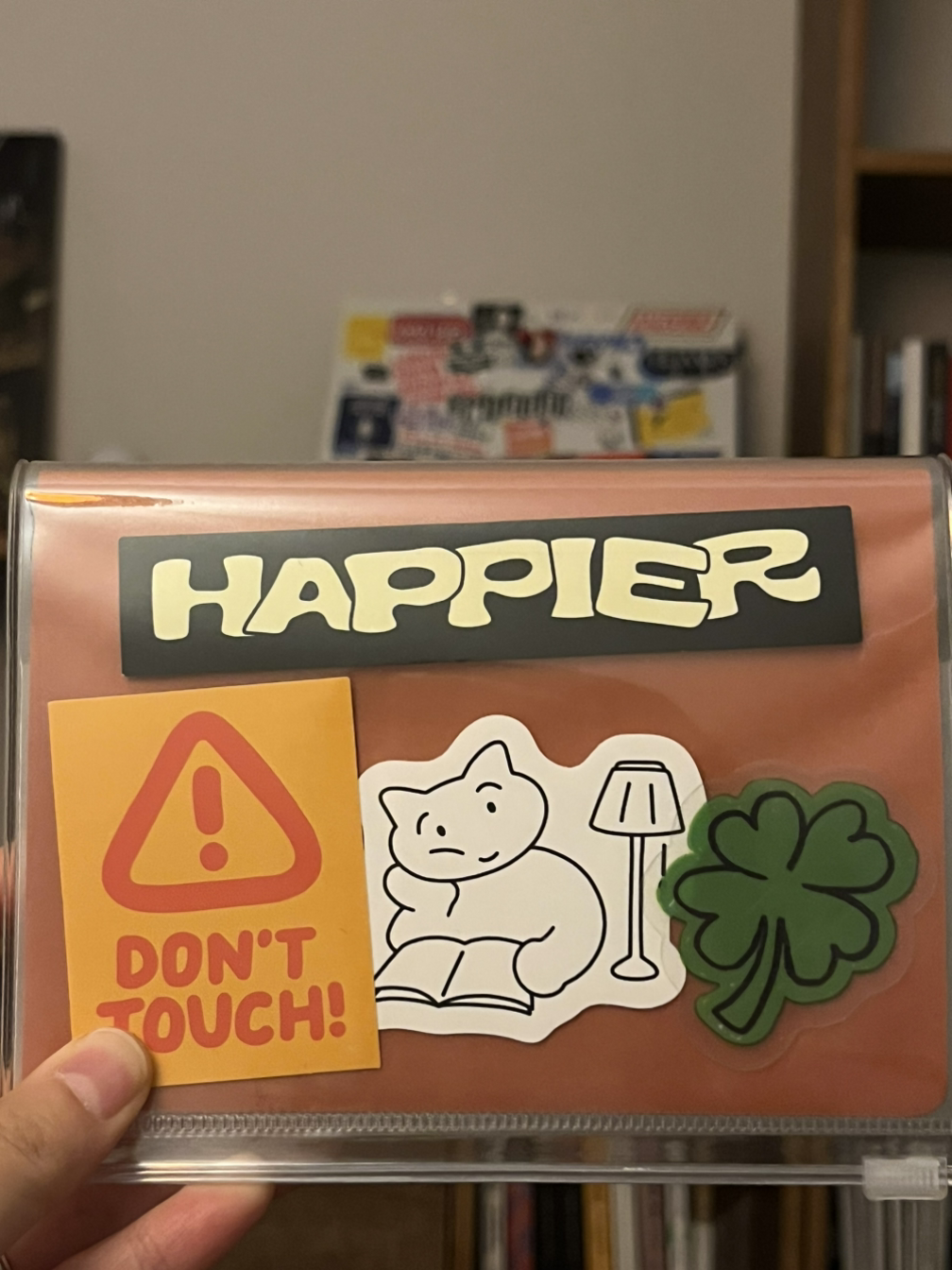 일단 나는 차분하고 또 단정한 사람이 되고 싶다. 외적뿐만 아니라 내적으로도, 그러니까 내가 쓴 다이어리나 글에도 그런 것이 묻어났으면 한다. 글, 텍스트만으로 잘 정리된 다이어리 같은 사람. 근데 계속 다음 장을 들춰보고 싶게 보는 재미가 있는 다이어리를 쓰는 사람이 되고 싶다. 이 노트를 사 온 파피어프로스트에 기록된 노트 같이 말이다. 그런데 내 다이어리를 들춰보면 작고 귀여운 스티커들이 덕지덕지 붙어있다.