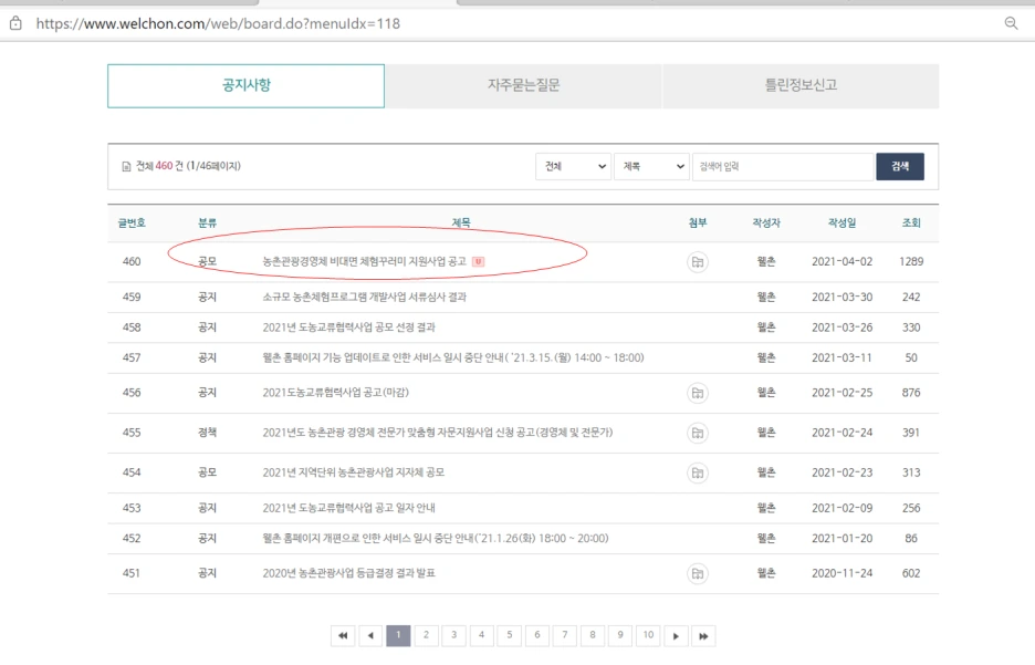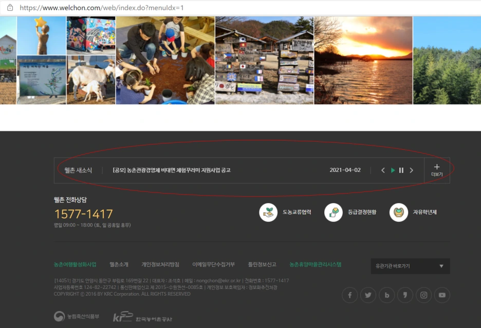 이렇게 웰촌 홈페이지 한단에 보면 "웰촌 새소식"이라는 공지사항이 있는데