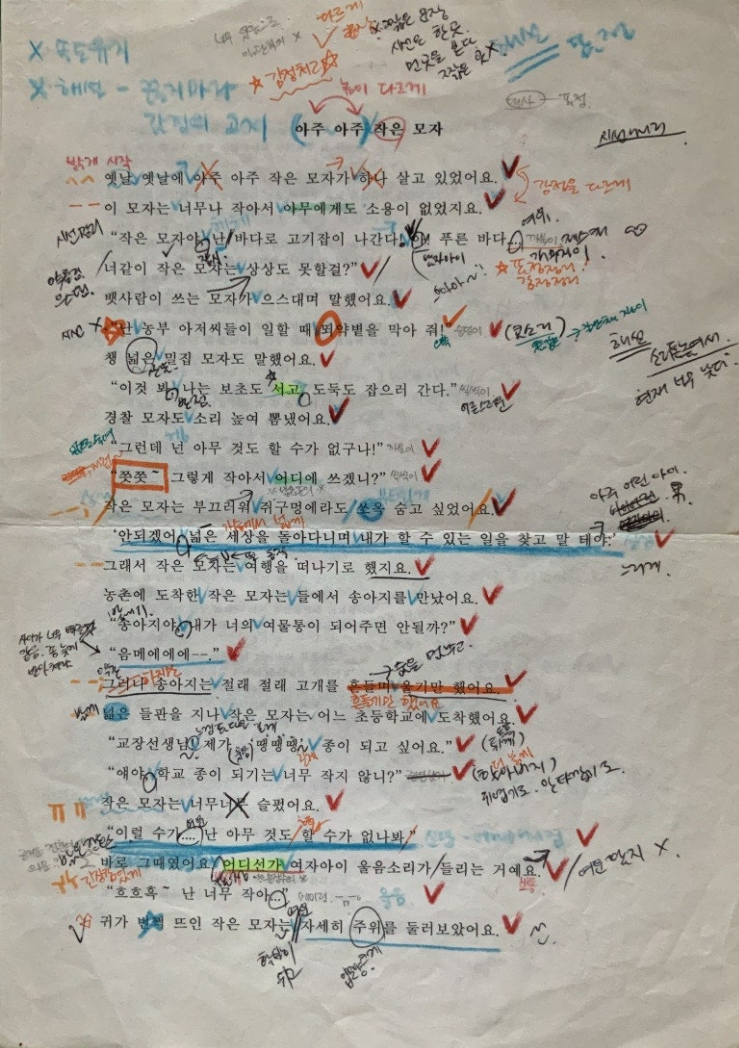 (지금의 대본 체크와 크게 다를 게 없는 거 같은 과거의 대본)