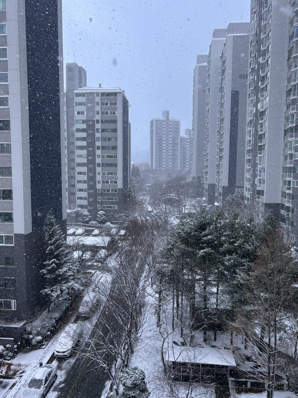 눈 오는 날 아침은 유난히 밖이 조용하다.