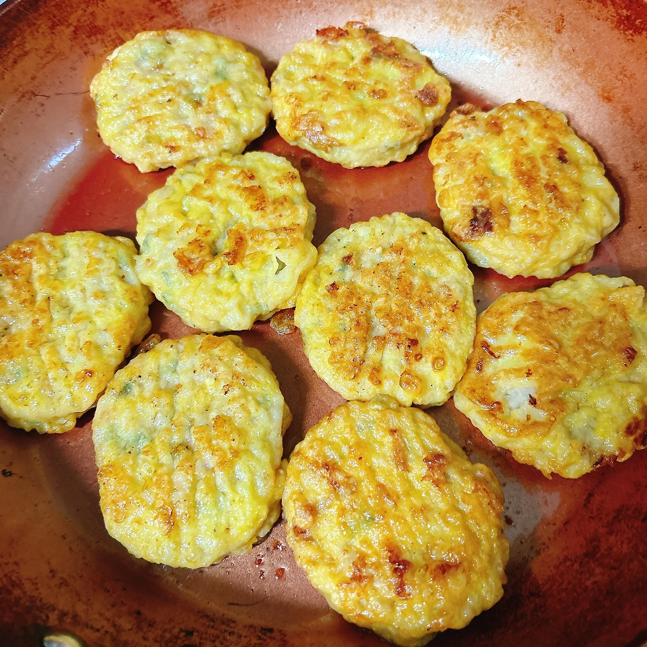 비비고'에서 만든 '계란옷 입은 고기완자'를 전자레인지로 해동시킨 후 기름 두른 후라이팬에 자글자글 지져준다. 고소한 냄새가 진동을 한다. '비비고' 없었으면 주부들 어쩔 뻔했나 싶다.