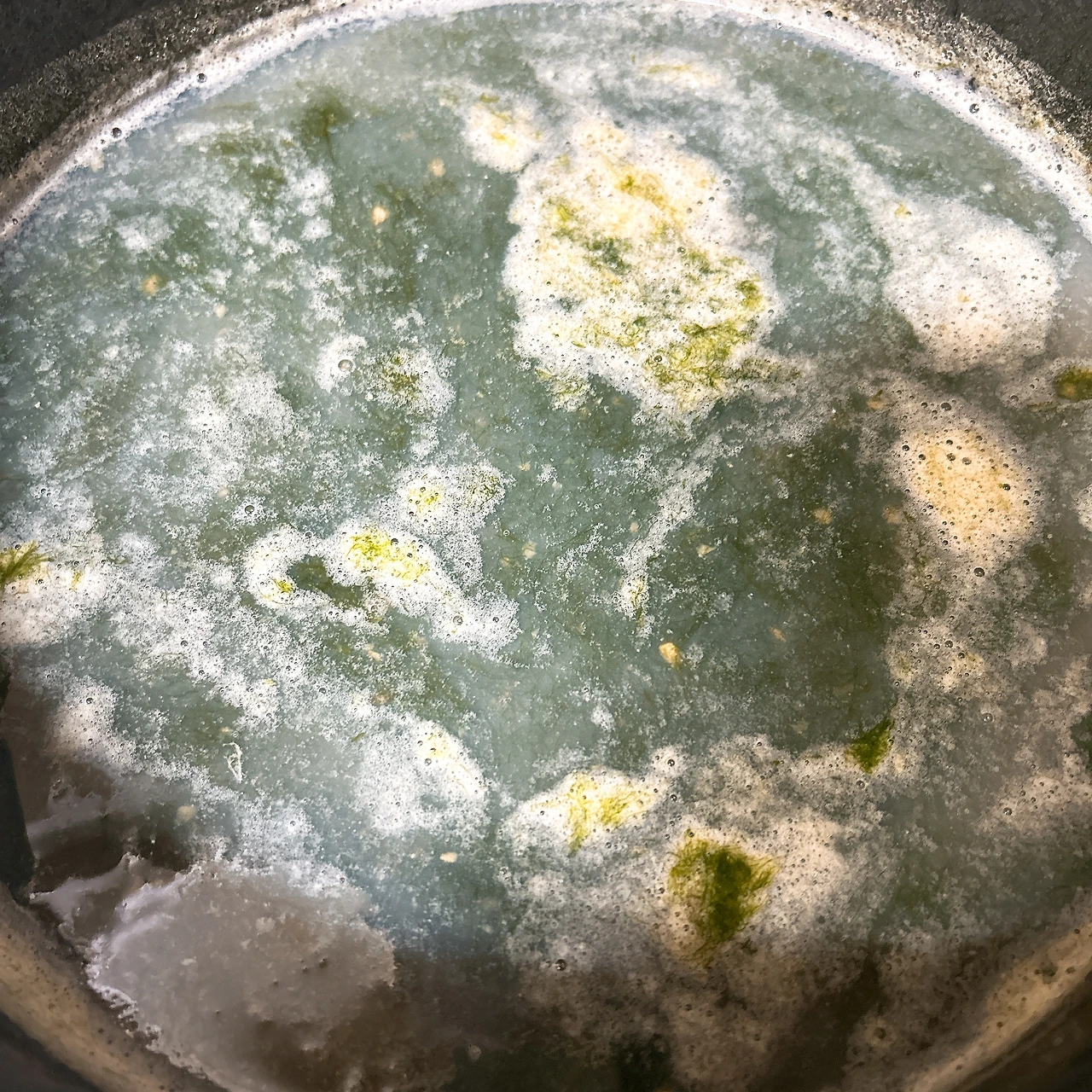 냄비에 매생이와 마늘을 넣고 한소끔 끓이고 국간장을 넣어 일차로 간을 봤다. 이제 굴을 투하하여 한 번 더 부르륵 끓어오르면 불을 끄고, 다시 국간장을 넣고 이차로 간을 본다. 맛있다. 매생이의 초록향이 가득 퍼진다.
