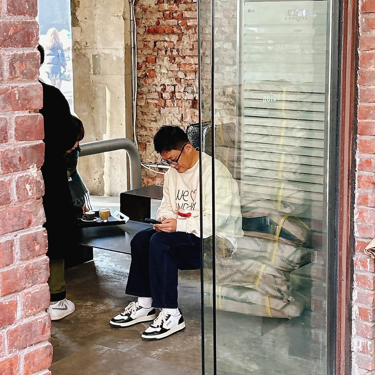우연히 마주친 심작가님과 짧은 인사를 나누고 건물 구경하고 나가려는데, 입구에 앉아 계신 작가님의 모습이 눈길을 잡아끌었다.