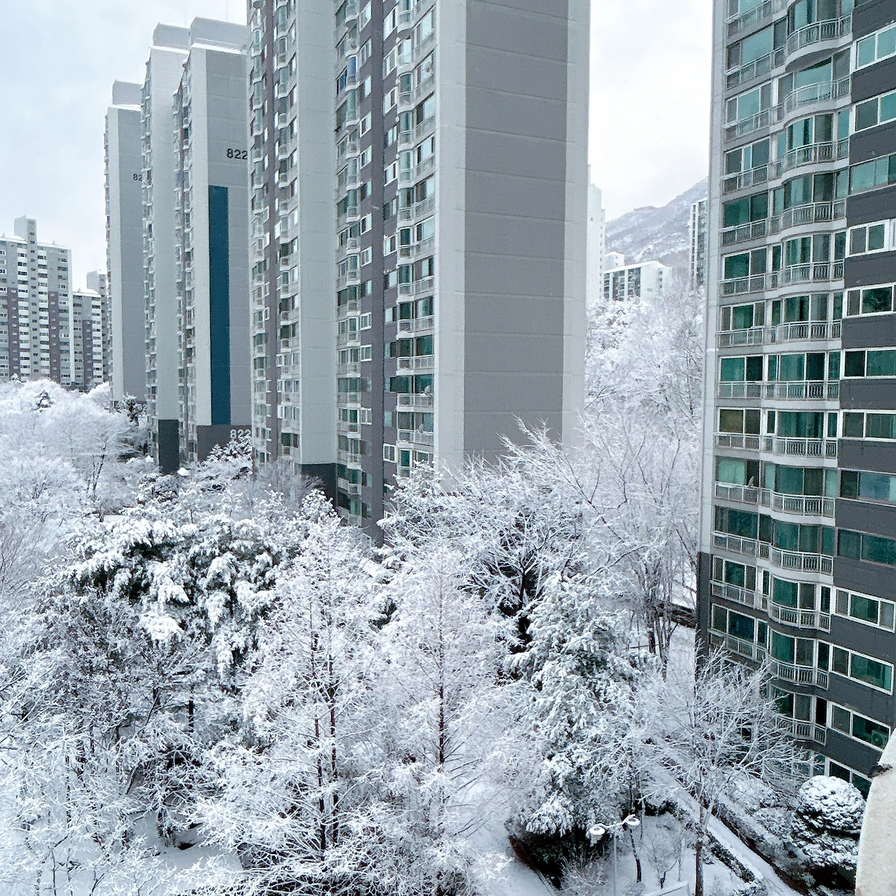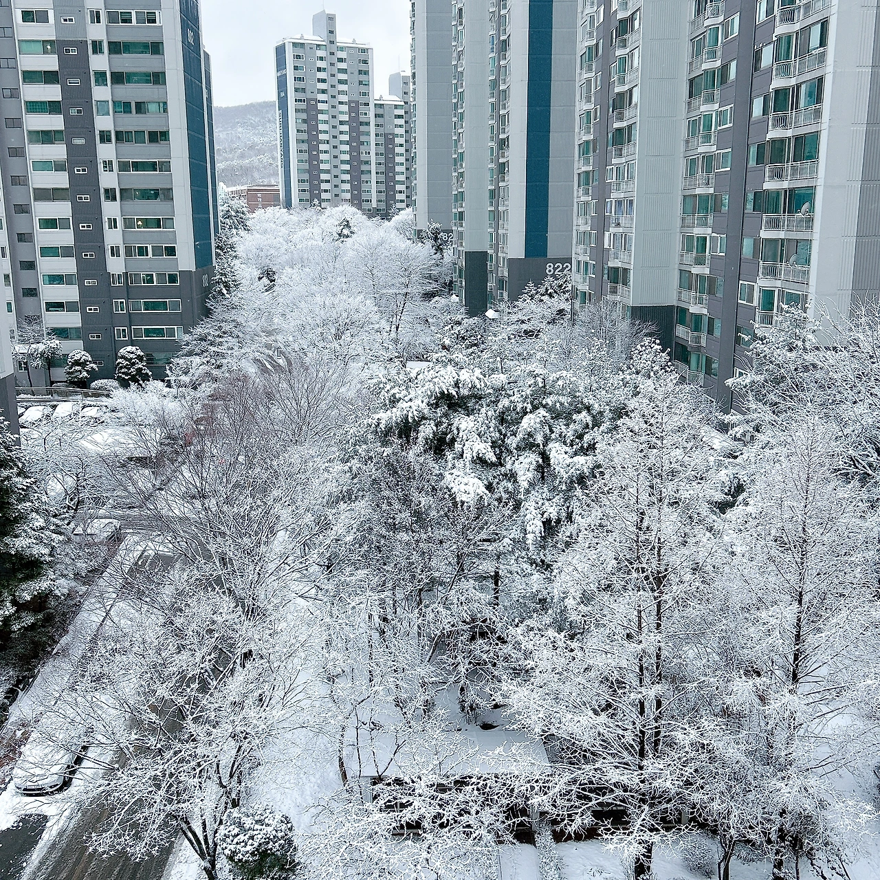 새벽 5시 50분쯤에 밖에 나가 봤다. 얇은 눈보라가 날리고 있었고, 인도에 쌓인 눈은 십 센티는 족히 되어 보였다. 짚엎 후드를 뒤집어썼지만 슬리퍼를 신고 나온지라 발이 시렵기도 했고, 어둑어둑 하니 무섭기도 해서 금방 집으로 들어왔다. 밖이 밝아지기를 기다리고 있었다.