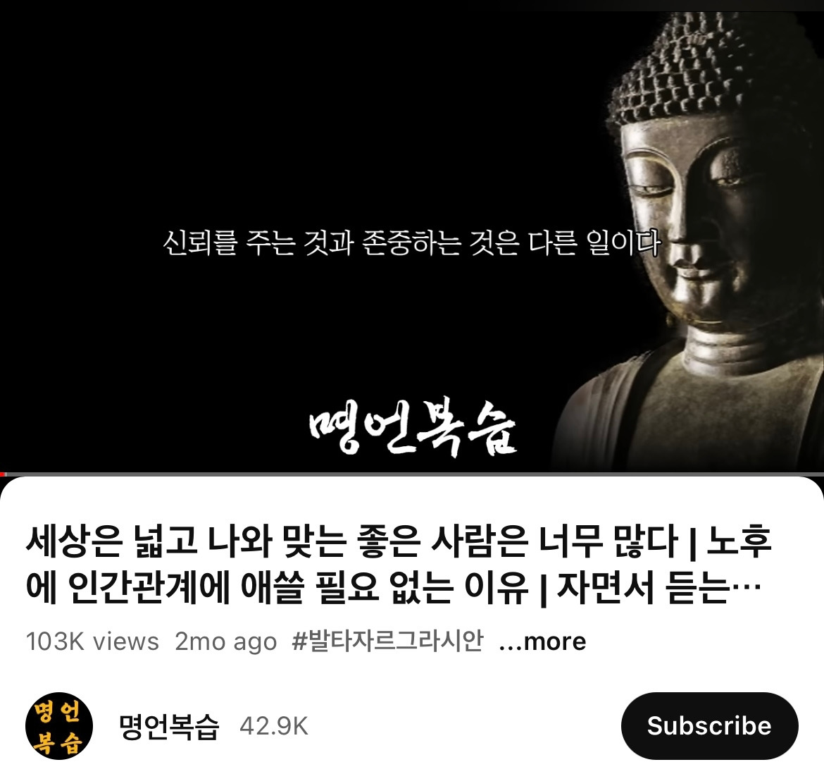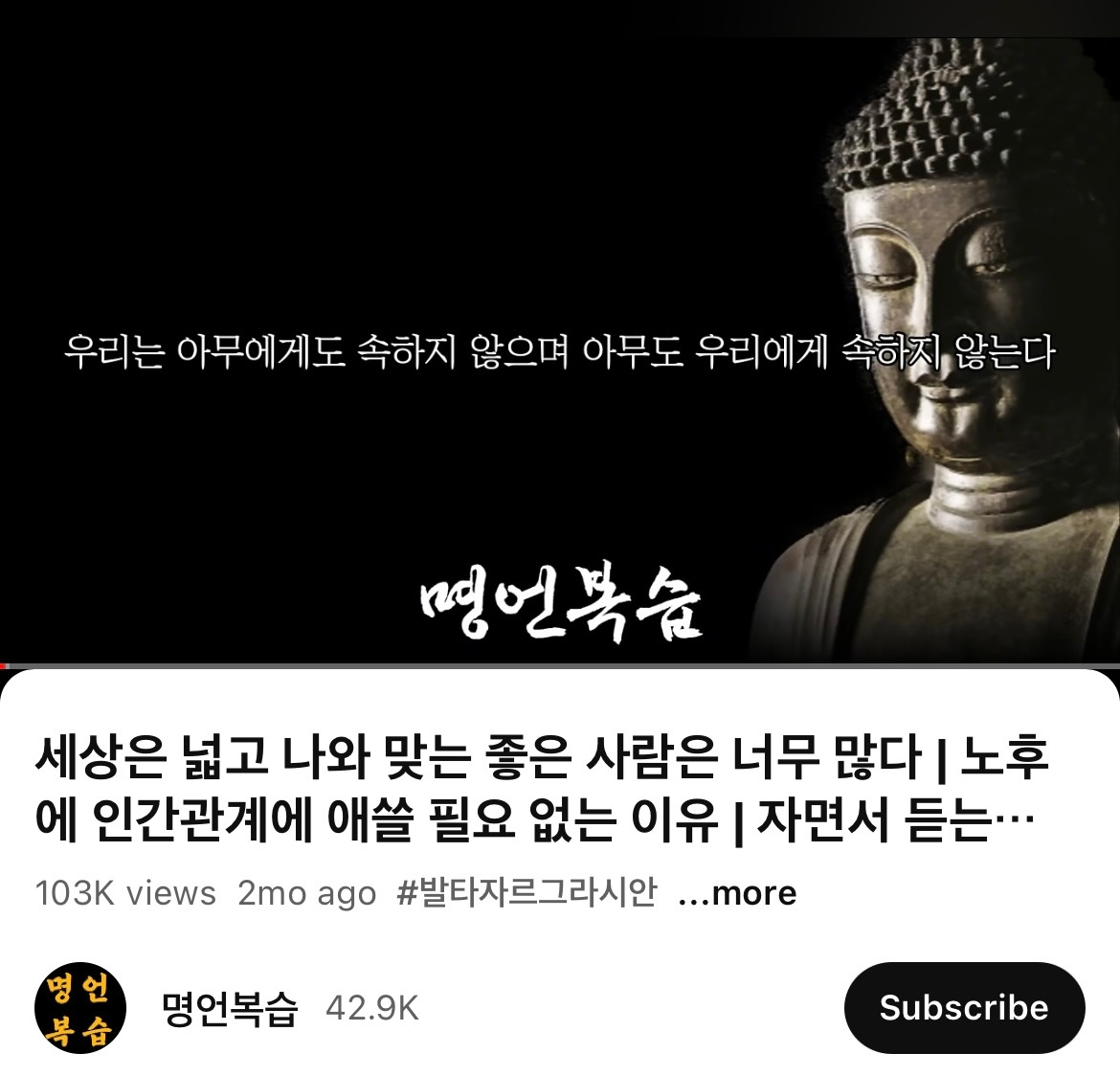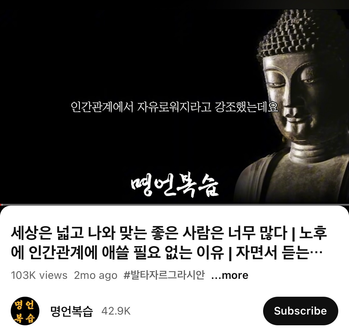 <명언복습>이라는 알고리즘이 떠서 자장가로 틀어 놓았는데, 부처님과 철학자들의 조언이 시작부터 뼈를 때린다.