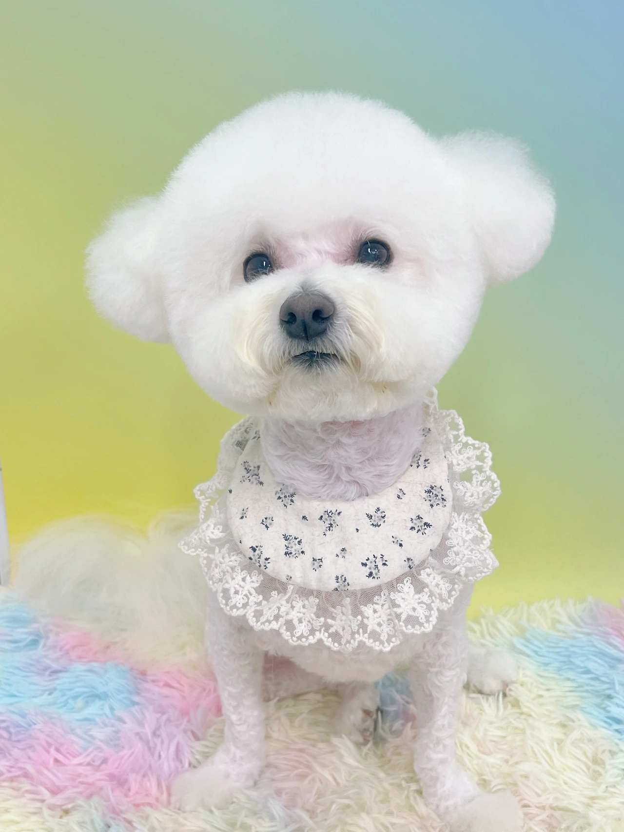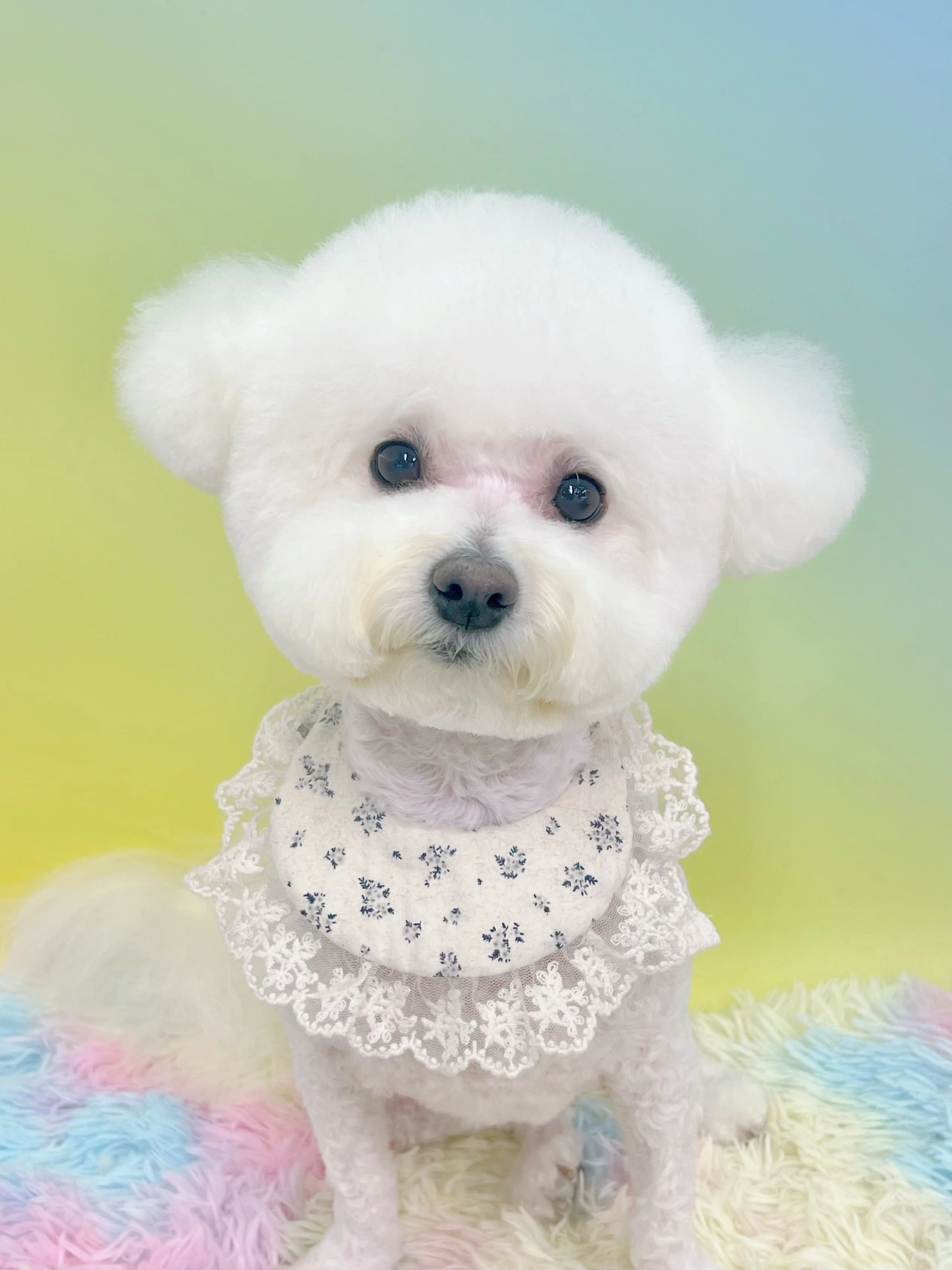 좀 전에 미용샾에서 별이 사진을 보내줬다. 별이에게 귀여운 턱받이를 해주고 포토존에서 사진을 네 장 찍어서 보내줬다. 미용사가 정성을 들여 털도 깎고 사진도 찍은 듯 보였다.