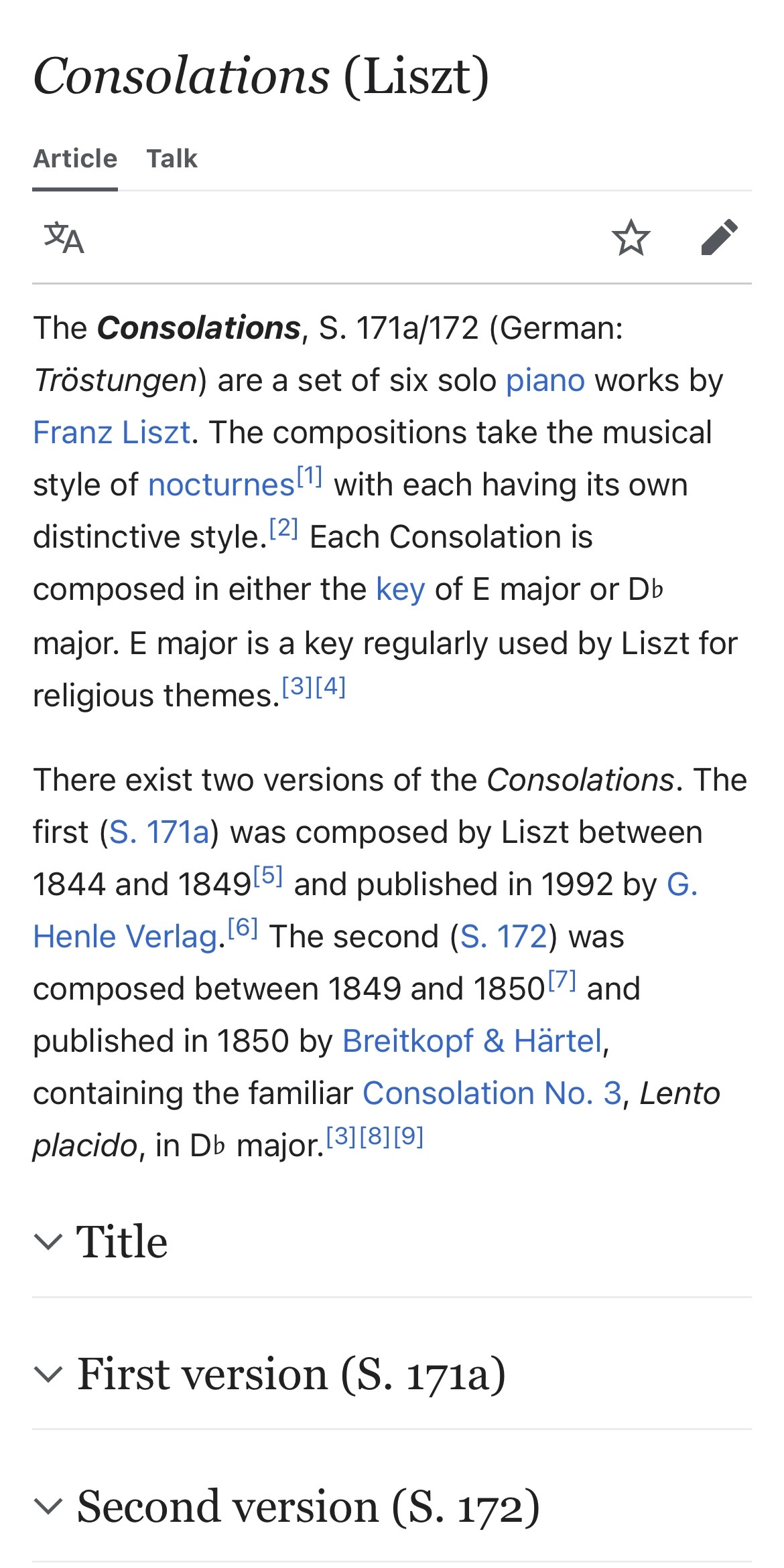 Consolation No.3는 consolation S.172 버전에 포함되어 있는 곡입니다.