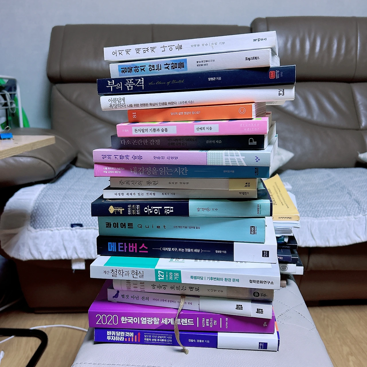 체중계를 제자리에 다시 갖다 두려고 내 방에 들어갔더니 책이 또 책상 위와 작은 정리대 위에 한 뭉탱이씩 쌓여있다. 허리가 아프기도 했고, 읽다 만 책들과 남길 책들을 또 솎아내야 한다고 생각하니 도저히 오늘은 더 할 수가 없었다.