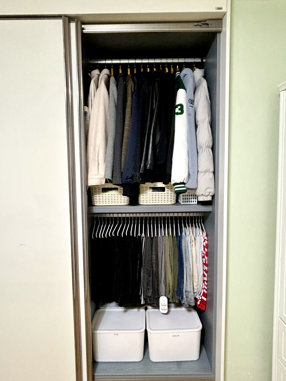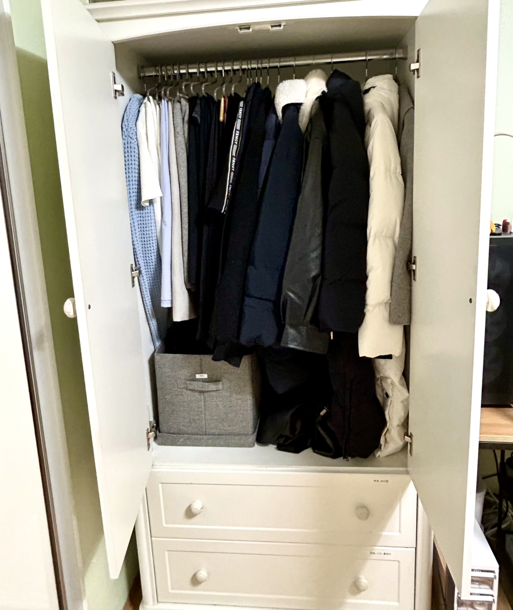 옷 한 벌 한 벌이 딸의 컨펌을 받으며 버릴 것과 남길 것으로 나뉘어졌다. 버릴 옷들은 투명한 김장 비닐봉지 여러 장에 모아져서 의류 수거함으로 보내졌다. 두 분이서 가져온 옷걸이와 내가 미리 준비해 둔 옷걸이 백개를 이용해서 손이 안 보일 정도의 속도로 옷을 걸어 붙박이 장롱을 채워나갔다.