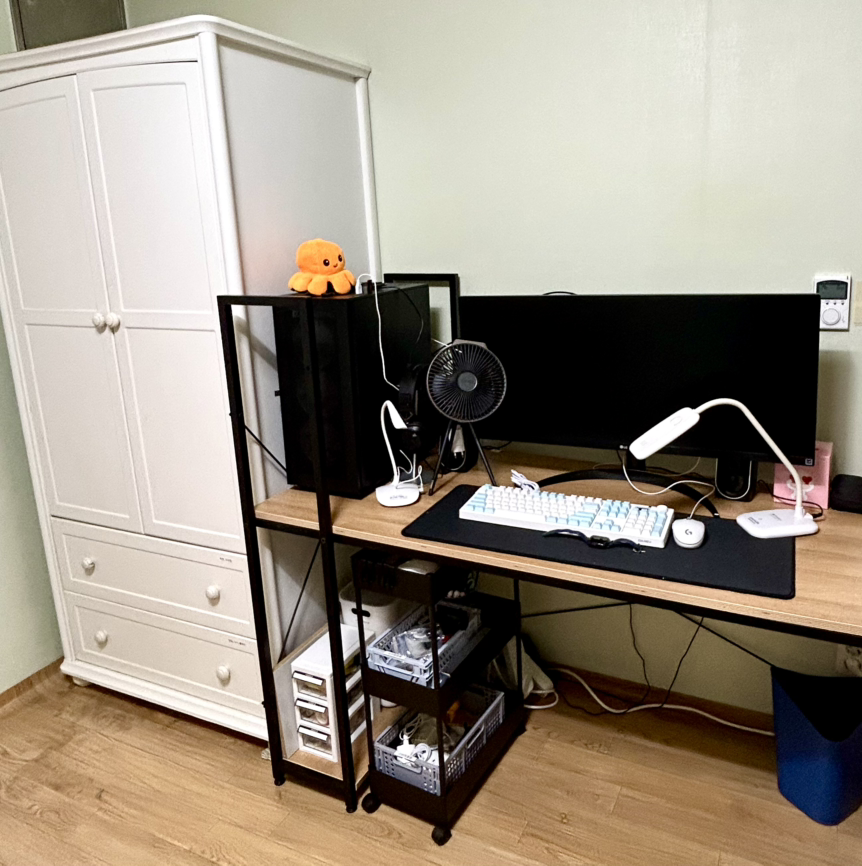 책상 아래쪽에는 벗어놓은 옷더미들이 한 층씩 탑을 쌓아 올리고 있었고, 바닥에 펼쳐놓은 큰 타원형 테이블 위에는 먹는 약과 이제는 필요 없는 기한 지난 약봉지들이 어질러져 있었다. 심지어 뜯지도 않은 굿즈 택배들도 쌓여 있었다. 침대에는 '여기가 인형 뽑기 하는 곳인가' 의문이 들 정도로 인형들이 한가득이었다.