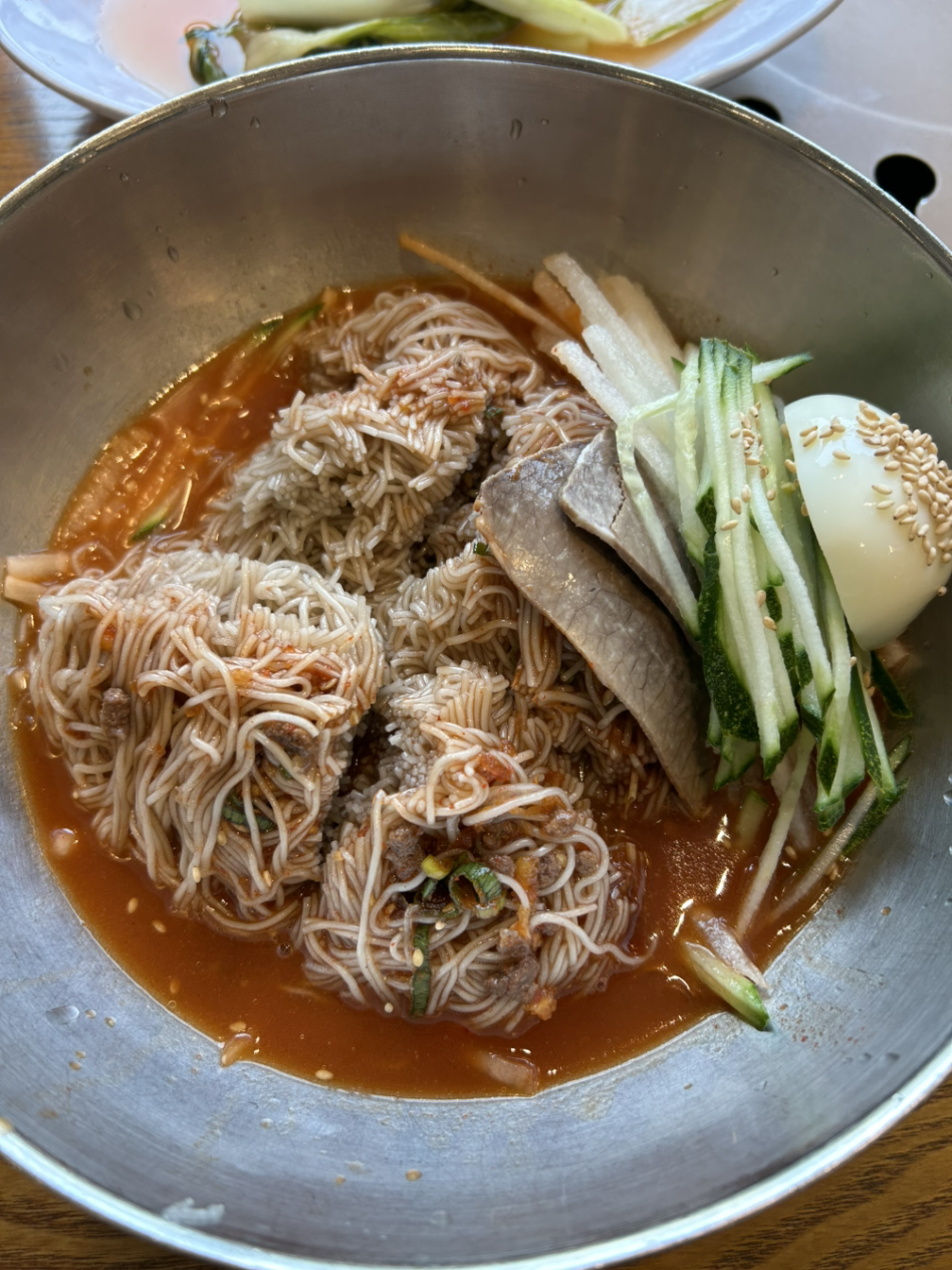 소심하게 인증샷을 찍고 초록으로 가득한 나뭇잎 길을 따라 중심상가 고깃집으로 향했다. 냉면은 고깃집이 제일 맛있으니까.