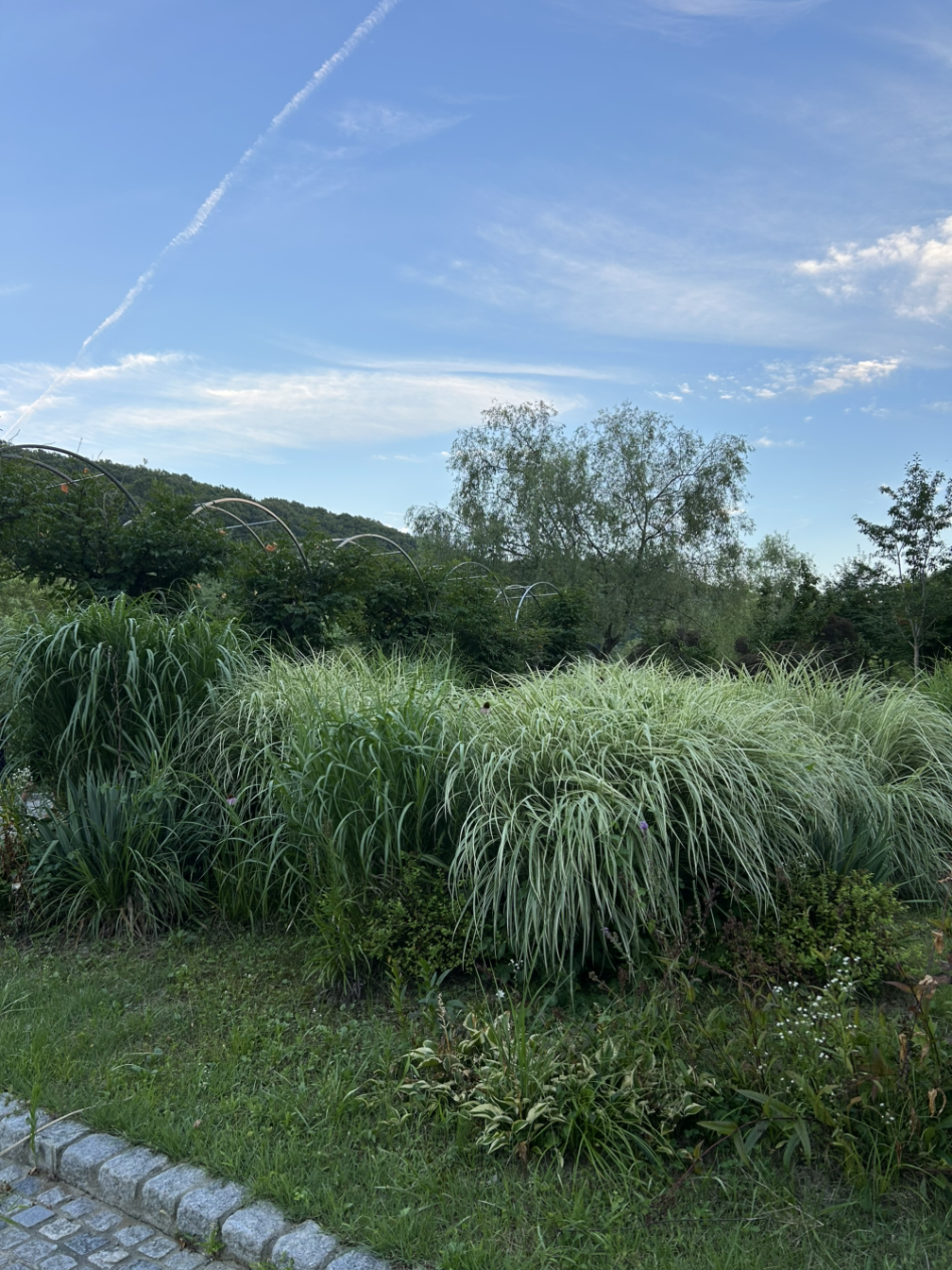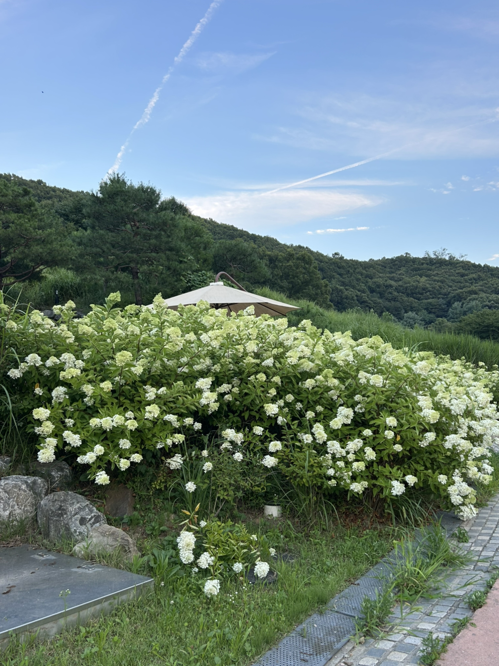 꽃과 풀, 나무들, 초가지붕을 얹은 쉼터를 하나씩 눈에 담아본다. 뜨뜻한 공기가 몸속으로 들어와 몸이 데워지니 등에 땀도 조금씩 난다. 종일 에어컨 바람으로 억지로 몸의 온도를 낮추고 지냈는데, 땀이 나는 지금 이 순간에 몸이 제 기능을 하는 느낌이다.