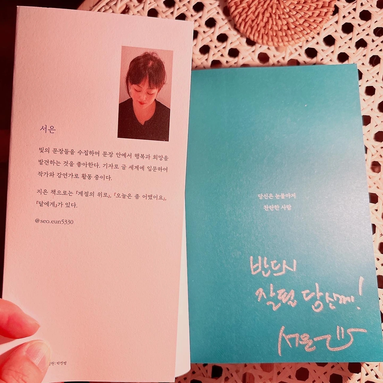 작년 저에게는 있을 수 없는 일이 생겼고, 그 일을 겪은 후 여름 내내 밥도 못 먹고 누워서 지낼 수밖에 없었습니다. 그때 우연히 만나게 된 책이 서은 작가님의 <계절의 위로>였습니다. 문장을 한 줄 한 줄 읽으면서 눈물을 뚝뚝 흘렸고, 그 눈물이 신기하게도 상처를 아물게 했습니다. 그렇게 다시 잠도 잘 수 있었고, 일상으로 돌아올 수 있었습니다. 사람마다 각자 처한 상황과 마주한 사람들이 다르겠지만, 상처 입은 마음을 어루만져 주는 문장들이 있었기에 치유의 과정을 겪어냈다고 생각됩니다. 작가님, 감사합니다.