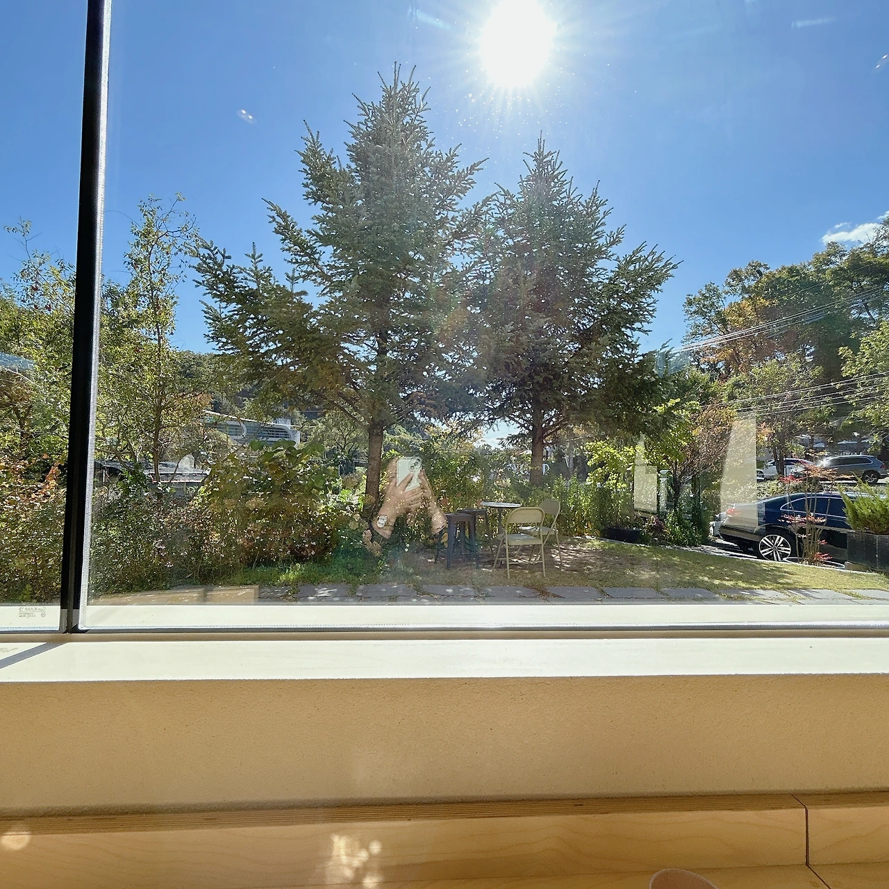 정원에서 사진을 찍으며 자리를 잡고, 바람에 흩날리는 머리카락을 부여잡으며 셀카를 몇 장 찍었다. 맨얼굴임을 나 자신에게 강조하면서, 이 정도면 괜찮네.라고 혼자 만족한다.