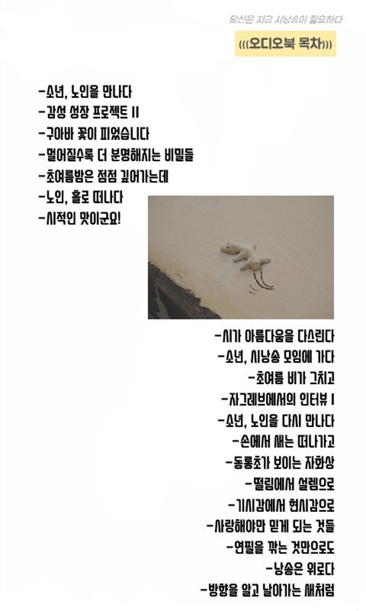 평면 낭독과는 전혀 다른 분위기로 낭독해 드리니 두 가지 버전을 모두 소장하셔도 좋습니다.
