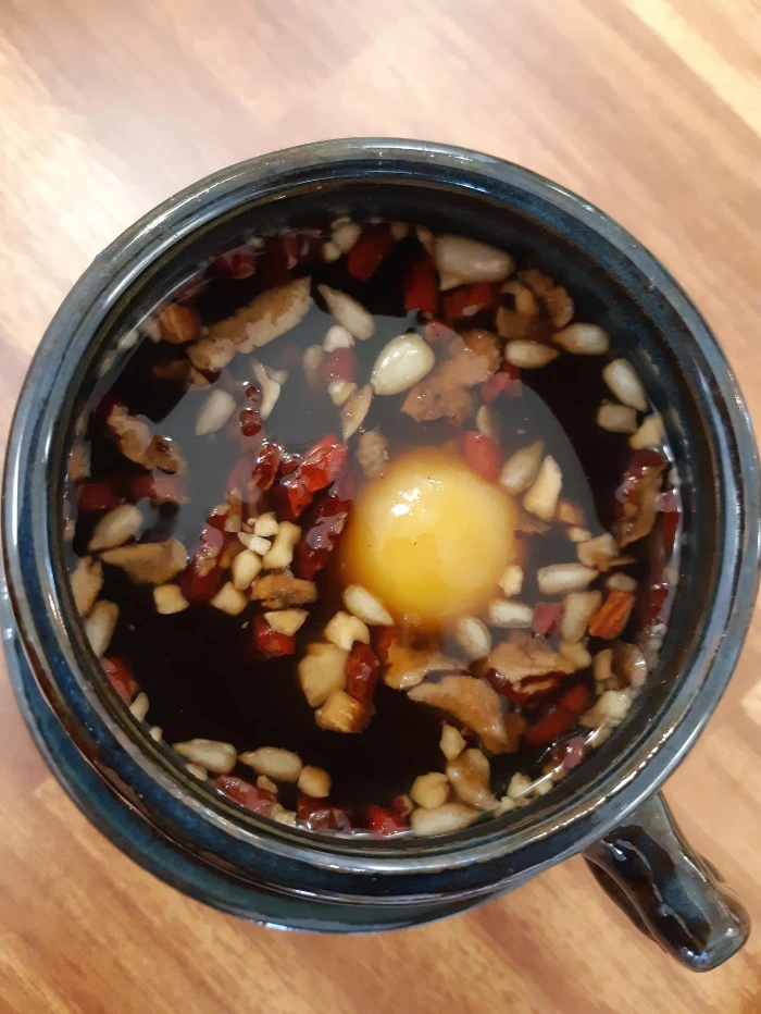 재료보다 주인의 넉넉한 미소가 음료에 대한 신뢰를 주는 듯했다. 주문을 하자 계란 노른자가 동동 달처럼 떠 있는 차가 투박한 작은 항아리 같은 잔에 나왔다.
