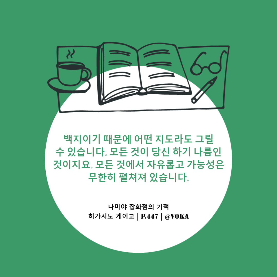 백지이기 때문에 어떤 지도라도 그릴 수 있습니다. 모든 것이 당신 하기 나름인 것이지요. 모든 것에서 자유롭고 가능성은 무한히 펼쳐져 있습니다. 이것은 멋진 일입니다. 부디 스스로를 믿고 인생을 여한 없이 활활 피워보시기를 진심으로 기원합니다.
