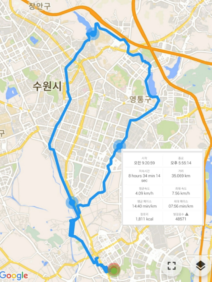 약 5만 보가 넘는 강행군이었다.