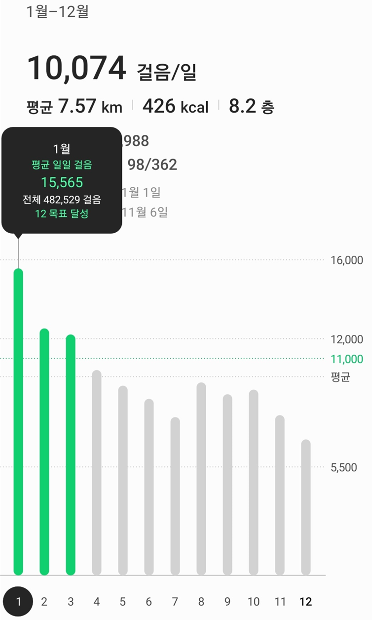 돌아보면 1월이 가장 심적 고통이 고통이 최고조에 달했었고, 자존감을 찾고자 무던히도 노력했기에 열세 권이라는 책과 함께 걷기 또한 482,529보를 달성할 수 있었다.