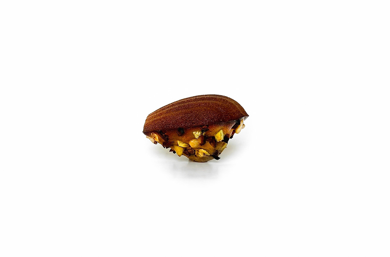 마들렌 반죽에는 약식에 넣는 재료들을 그대로 사용했다. 평소 사용하는 백설탕 대신 묵직한 단맛을 느낄 수 있는 흑설탕을 넣고, 대추고와 꿀로 풍미를 더했다. 소금 대신 단맛이 강한 진간장과 짠맛이 강한 국간장을 섞어서 사용했고 마지막에 고소한 참기름을 더해서 특유의 풍미를 완성했다. 밤은 원래 생밤을 사용하거나 따로 조려서 사용하는데, 마들렌은 굽는 시간이 짧아 생밤은 사용할 수 없고 이미 단맛이 강한 편이라 그냥 삶은 밤을 쓰기로 했다. 대추는 건대추를 그대로 사용해도 되지만 개인적으로 대추 껍질 특유의 이물감을 싫어해서 건대추를 바싹하게 말린 대추 칩을 사용했다. 평소와는 사뭇 다른 재료들을 사용했기에 반죽을 완성하고 살짝 찍어 먹어봤는데, 이미 약식 특유의 풍미가 물씬 풍겨서 웃음이 터져 나왔다.
