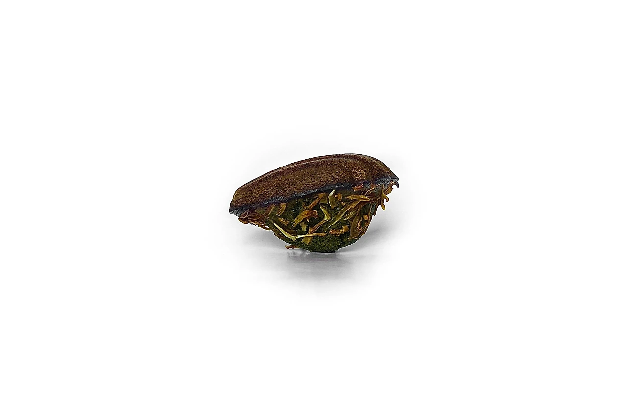 된장을 마들렌에 사용한다고 생각하면 상당히 거부감을 느끼는 사람이 많을 텐데, 된장은 의외로 디저트에 사용해도 제법 좋은 맛을 낸다. 물론, 된장 특유의 쿰쿰한 냄새와 다소 날카로운 풍미는 적당히 조절해야 하지만, 자체의 구수한 풍미와 짠맛은 충분히 매력적인 요소가 될 수 있다. 된장은 오븐에 한 번 구워서 사용했는데, 된장을 굽게 되면 혹시나 된장에 있을 수 있는 떫거나 쓴맛이 휘발되고, 된장 내 아미노산과 당분이 가열되면서 좀 더 깊고 구수한 풍미를 느낄 수 있다. 머위는 다른 나물에 비해 쓴맛이 강하기 때문에 한 번 데친 뒤에 찬물에 담가 쓴맛을 빼서 사용했다. 취향에 따라 쓴맛을 전혀 빼지 않고 쓰는 사람도 있는데, 이따금 쓴맛이 너무 강할 때도 있으니 적당히 빼는 것을 추천한다. 쓴맛을 적당히 뺀 머위는 바싹 말려 가루를 내어 구운 된장과 함께 마들렌 반죽에 섞어 주었고, 강된장 특유의 맛을 살리기 위해 바싹하게 말린 양파와 버섯을 마들렌 반죽 위에 올려주었다.
