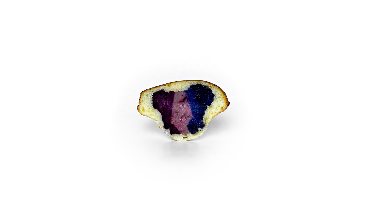 곱게 간 울타리 콩은 고운 체에 한 번 걸러냈고 완두콩 앙금처럼 소량의 설탕과 아주 조금의 생크림을 섞어주었다. 혹시나 콩 맛이 너무 강할까 봐 올해는 매실 대신 세 가지 과일을 따로 준비해 뒀는데, 이게 웬걸. 완두콩 앙금만큼이나 달콤하면서 고소한 감칠맛이 도는 매력적인 아이가 불쑥 입에 들어왔다. 귀신에 홀린 걸까. 분명 완두콩 앙금이 좀 더 내 취향에 가까웠지만, 강한 콩 맛도 쿰쿰한 향도 거의 자취를 찾을 수가 없었다. 심장 박동이 조금씩 빨라지는 게 느껴졌다. 준비해 둔 딸기와 오디 그리고 블루베리를 각각 섞어 맛을 보니 마치 대학생 무렵 한창 유행했던 일본식 찹쌀떡 속 과일 앙금처럼 각 과일 특유의 맛을 그대로 느낄 수 있는 구수한 앙금이 느껴졌다. 이거다. 봄의 마지막을 장식하는 딸기와 초여름의 오디 그리고 한여름의 블루베리 맛을 담은 마들렌을 만들 수 있겠다 싶었다. 그래서 반죽에는 유자청을 살짝 넣어 상큼한 맛을 살리고 새콤달콤한 세 가지 앙금을 가득 넣은 마들렌을 만들었다.