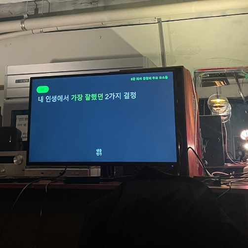 아쉽게도, 우리모임은 온통 얘기하느라 사진이 별로없다. 각자의 대답을 들으면서 다른생각을 가진 것이 재밌고, 또 재밌었다. 목표라던지, 시간이라던지, 경영이라던지. 기업의 경영처럼 머나먼 이야기 같았지만 우리에게는 정확하게 우리 자신을 알아가야할 의무가 있고, 모두가 자신의 삶을 이끌어나가는 경영자라는 점에서 많이 동의했던거같다.