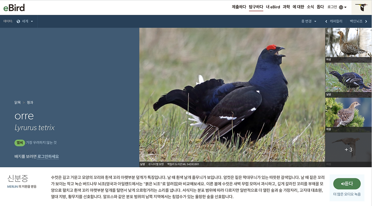 네, 이 새의 한국어 이름은 '검은 뇌조'입니다.