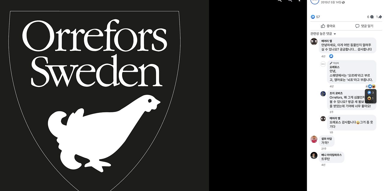 Orrefors Sweden의 로고 안에 있는 동물이 뭘까요?