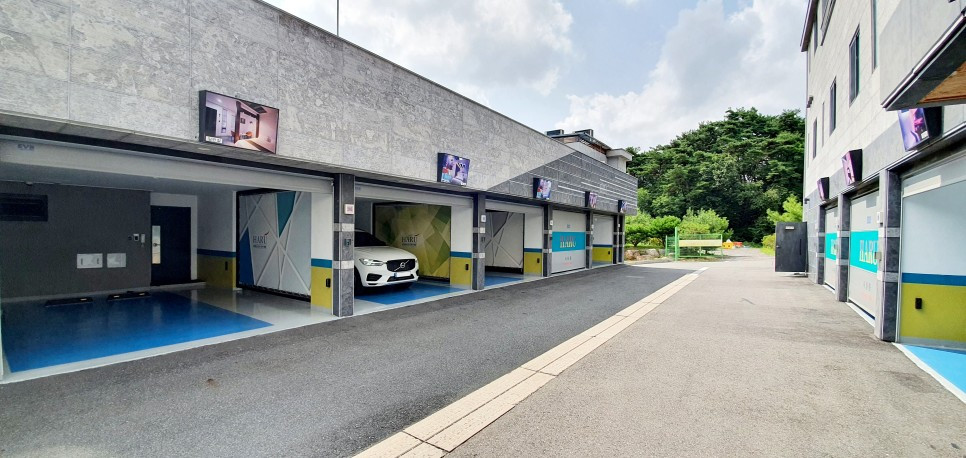 퇴실을 누르면 저렇게 주차장 셔터가 자동으로 올라갑니다. 하루 무인텔은 사진 처럼 특실, 일반실을 실내 인테리어를 보여주는 화면으로 구분하고 있더라구요, 주차장도 폭이 넓어서 양쪽다 차문 열기도 좋습니다.