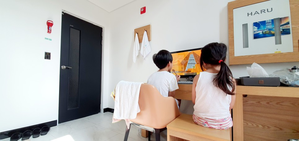 저 'HARU 무인 HOTEL' 아크릴 LED장식이 소리 크기에 반응하여 사운드 이펙트처럼 늘어났다 줄어들었다를 반복하는 것이었습니다. 저게 침대 위에 있더라구요.ㅎㅎ 딸이 소리에 반응하는 이 장식이 신기하고 재미있었는지, 계속 목소리를 반복적으로 내고 있었던 것이죠. 아주 그냥 별의 별것이 다 있는 무인텔입니다.ㅎㅎㅎ 딸의 알람에 잠을 완전히 깨버렸습니다. ㅎㅎㅎ 그래, 오늘의 일정을 시작해볼까?
