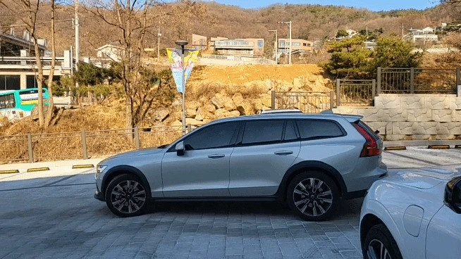 슬쩍 보니 V60CC에 사람이 안탄 것 같았습니다. 저는 또 볼보를 만나 너무 기분이 좋아가가 사진을 찍었지요. 일단 정면 사진 찍어주시고! 주차장이 약간 경사가 있어 제 XC60이 쳐져서 찍혔지만, 괜찮습니다. 이 상황에서는 제 XC60보다는 V60CC가 더 므찌게 나오는게 중요하니까요. ㅎㅎ 찍고 한번 보며 감상~ 캬! 므찌네!