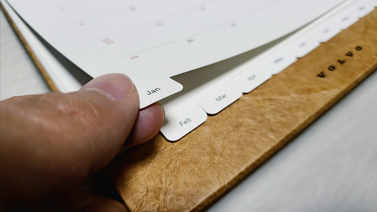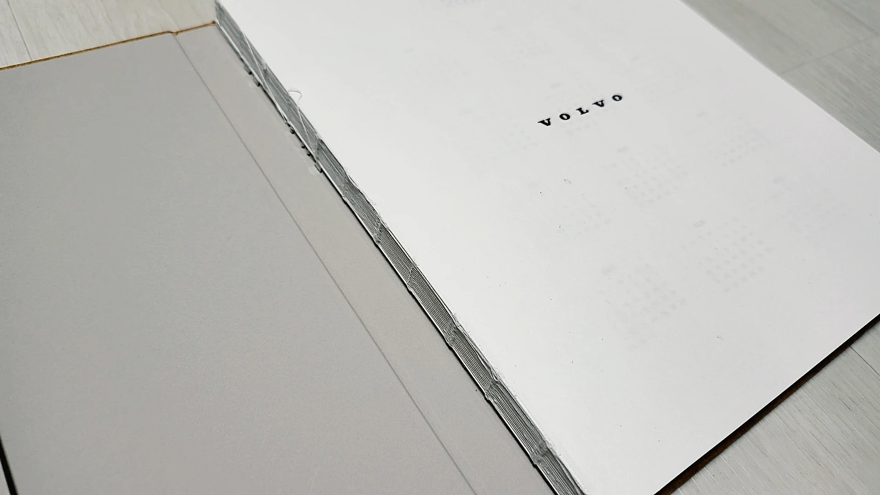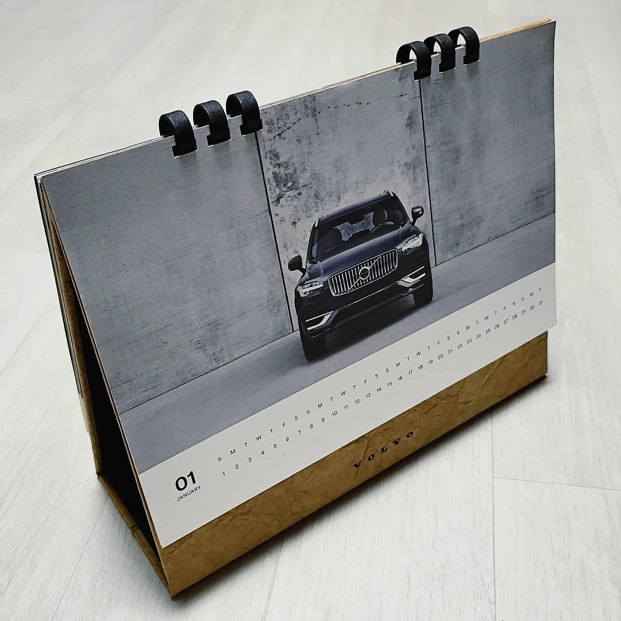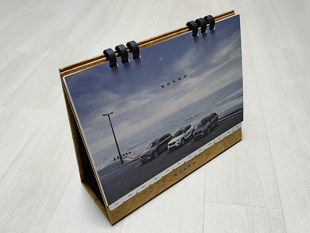 볼보 캘린더 또한 친환경 Tyvek 소재입니다. 또한 볼보달력 제본도 종이스프링으로 제본하였습니다. 이 또한 구조는 2022년 동일한데, 종이스프링 4구가 3구로 변경되었습니다.