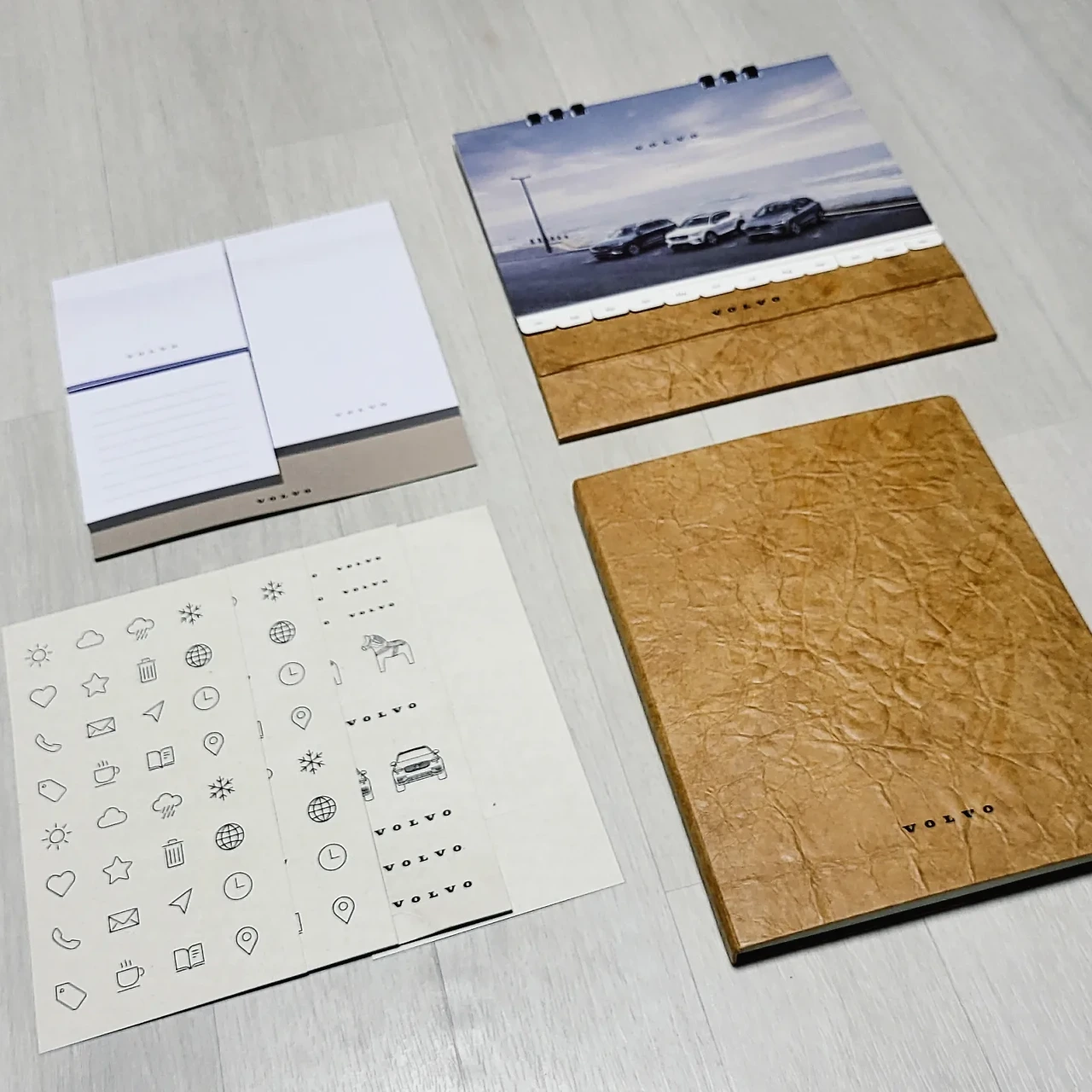 2023 볼보 캘린터 세트의 전체 구성입니다. 2022년의 볼보 캘린터 세트는 캘린더와 다이어리로만 구성되었었는데, 2023년의 볼보 캘린더 셋트는 2022년의 캘린더, 다이어리의 스타일을 준용하면서도 실용적이며 깨알같은 구성을 추가하여 더욱 완성도가 높아지고 상품이 풍부한 늒낌이 듭니다.