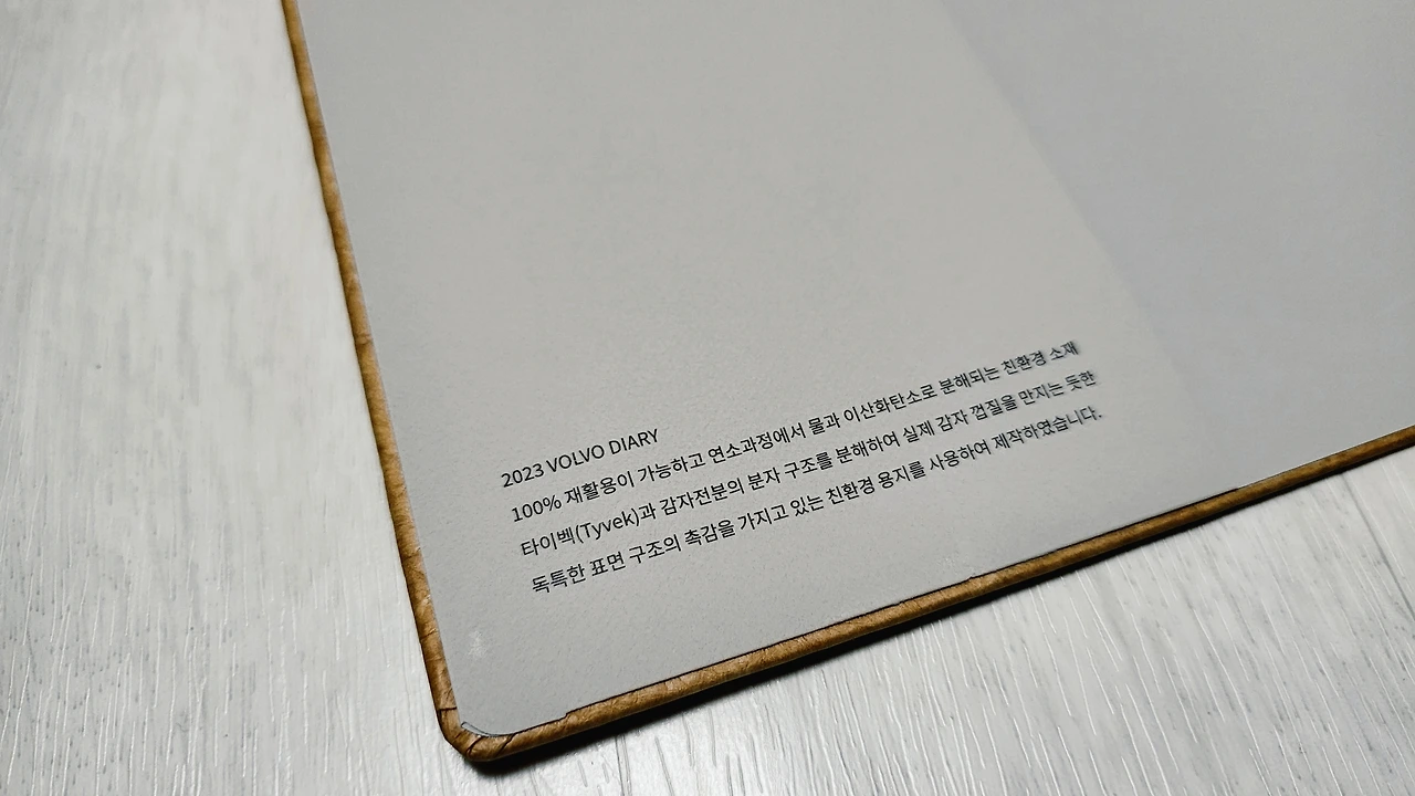 여윽시, 볼보 다이어리도 타이벡(Tyvek)소재입니다. 감자전분의 분자구조를 분해한 친환경 용지를 사용 하였다는건 이번에 처음 알았네요.